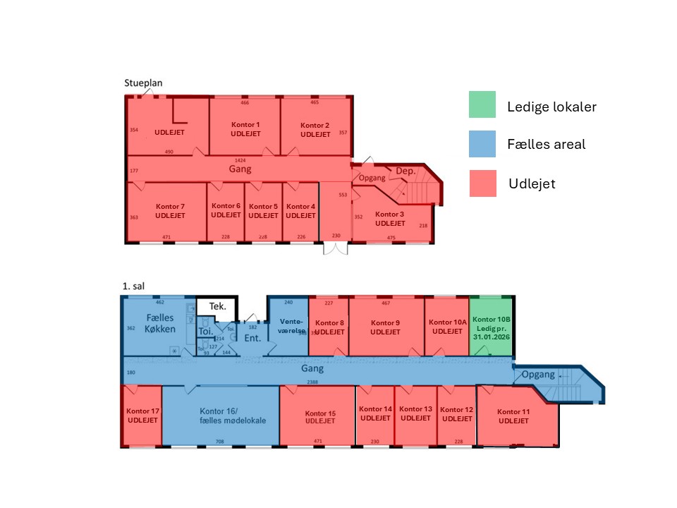 - Ca. 15 m² á kr. 3.500 pr. måned ( kontor nr. 10B)