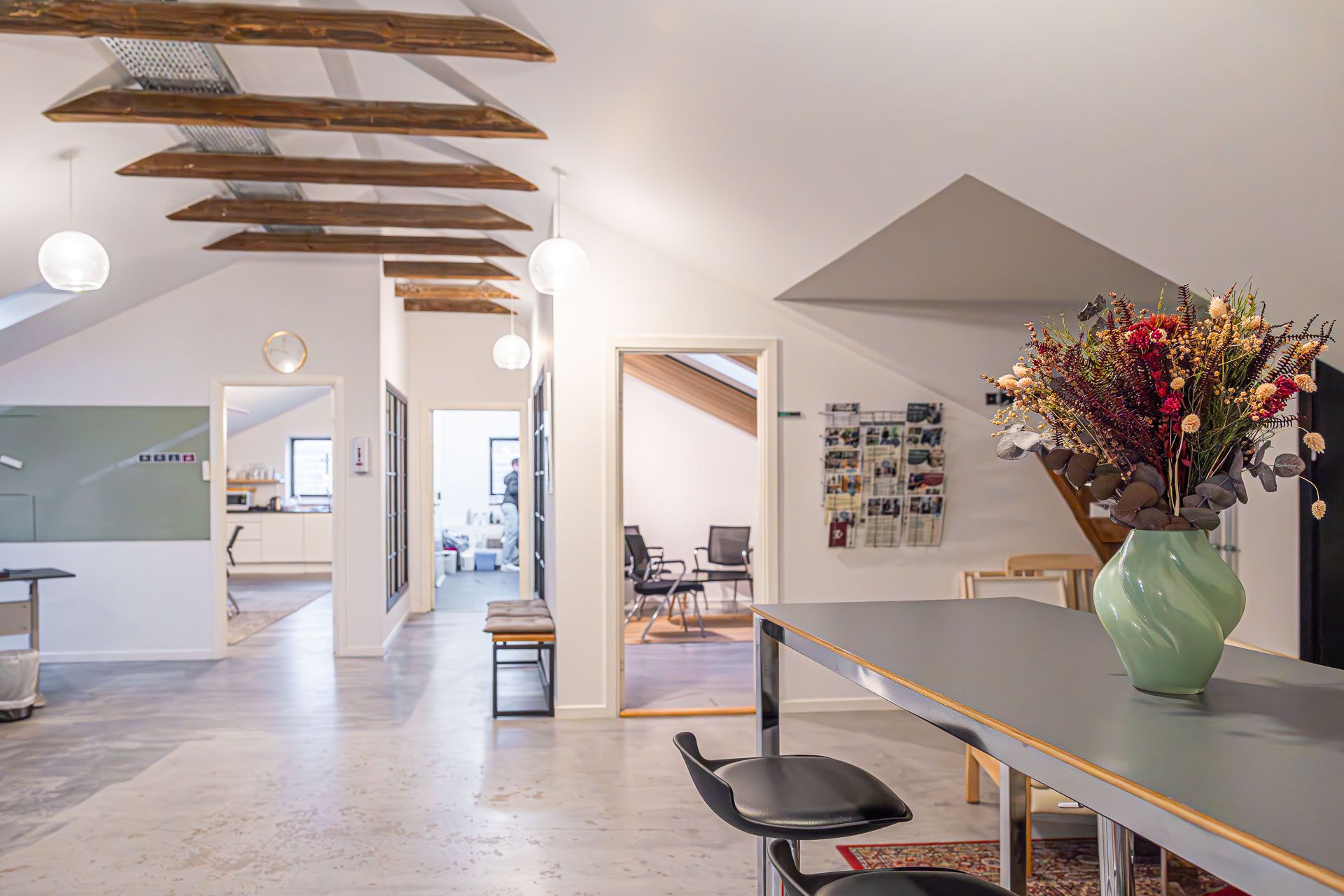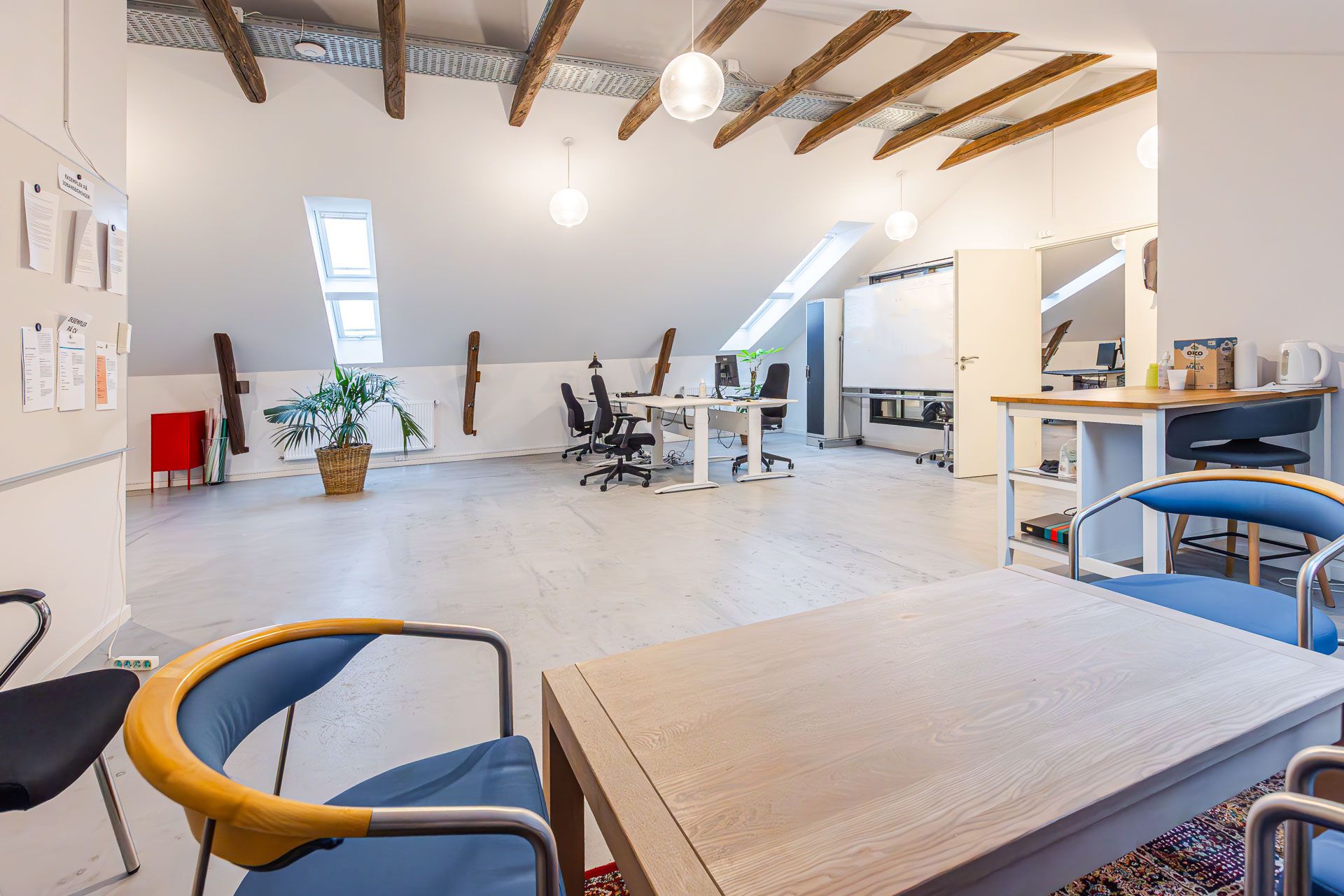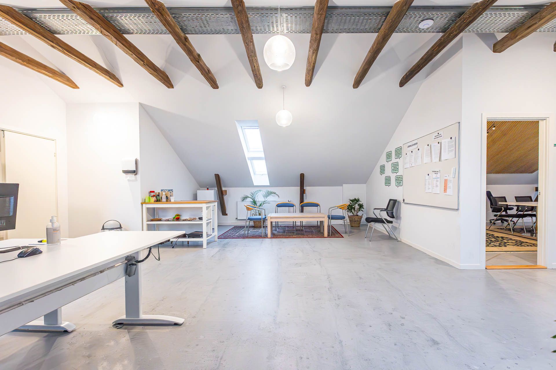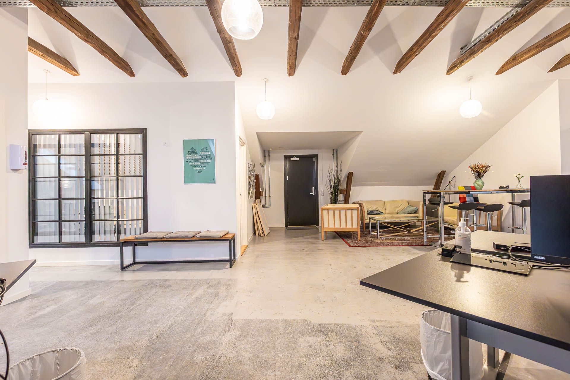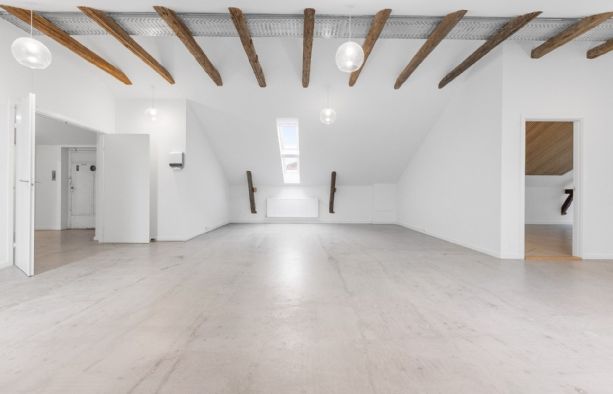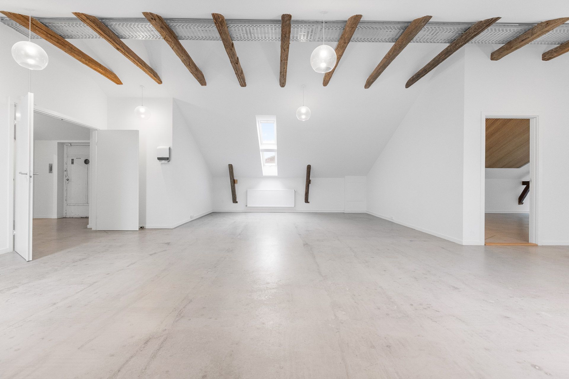 Lejemålet i tagetagen blev gennemgribende istandsat i 2020-2021 siden og fremstår i en flot standard - råt og rustikt og med respekt for det oprindelige. De gamle flotte trækonstruktioner er synlige og giver et flot udtryk/ oplevelse af rummet.