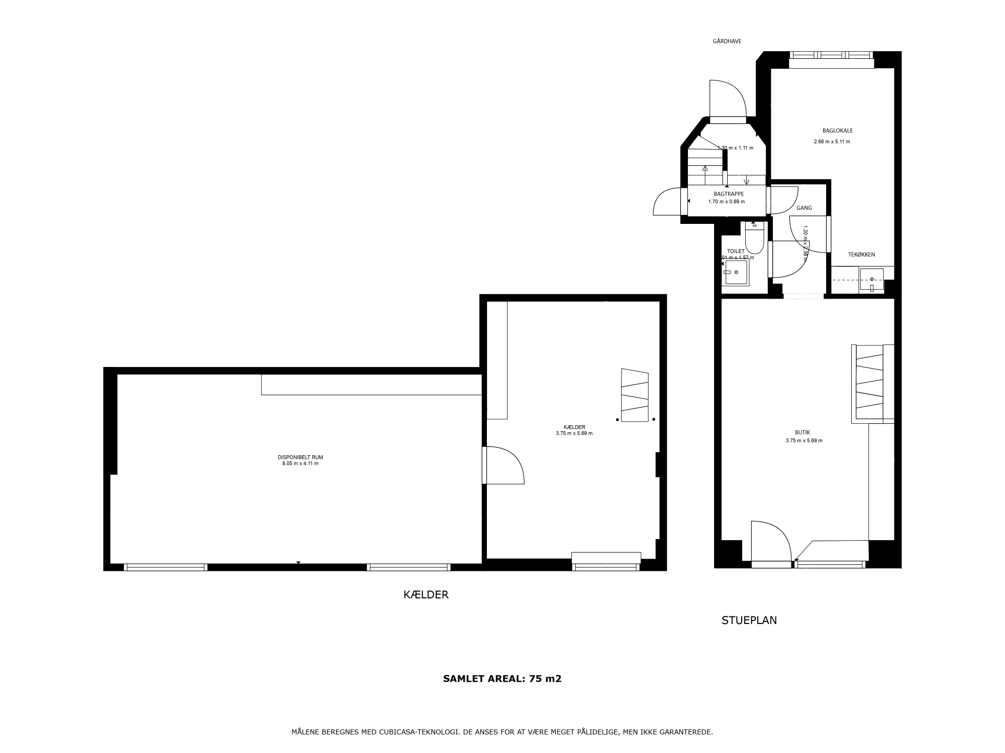Lejemålet rummer i alt 145 m², fordelt på 50 m² lyst og indbydende butiks- og baglokale samt 95 m² regulær kælder – perfekt til opbevaring eller værksted.