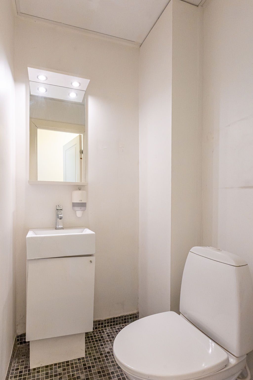 Det store butikslokale byder på et godt dagslys og med indgang direkte fra gaden og nedgang til den anvendelige kælder. Derudover adgang til et pænt toilet og baglokale med tekøkken og udsigt til et hyggeligt gårdmiljø.