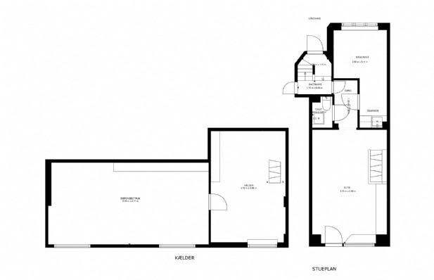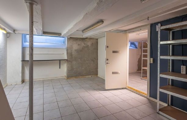 Kælderen består af to store, regulære rum med flisegulv, som giver mange indretningsmuligheder.