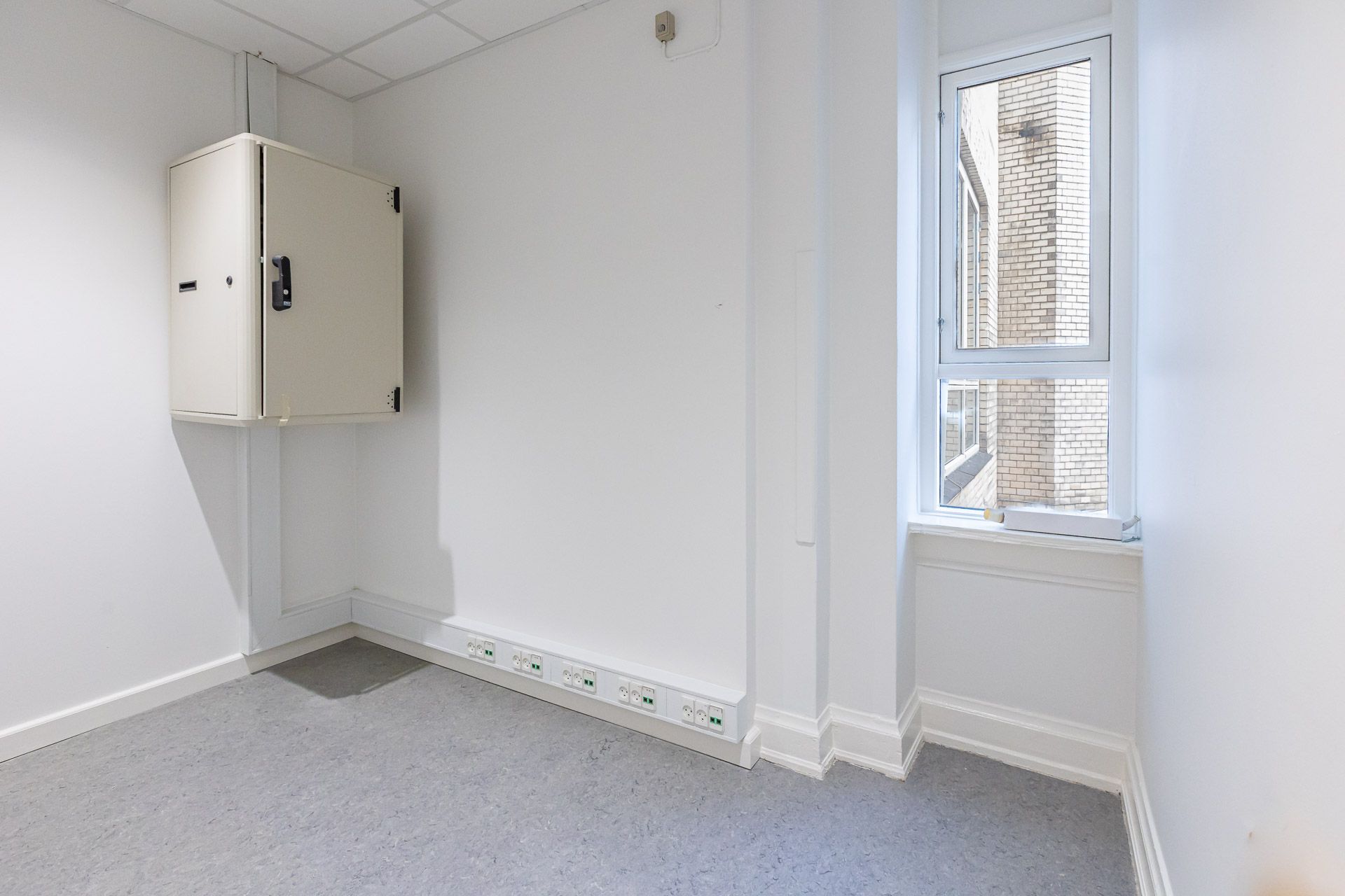 Indretningen er både funktionel og fleksibel og indeholder stort storrumskontor med smuk karnap og kig til Vestergade, to mødelokaler - heraf det ene med elegante glasvægge samt serverrum/depot og toilet