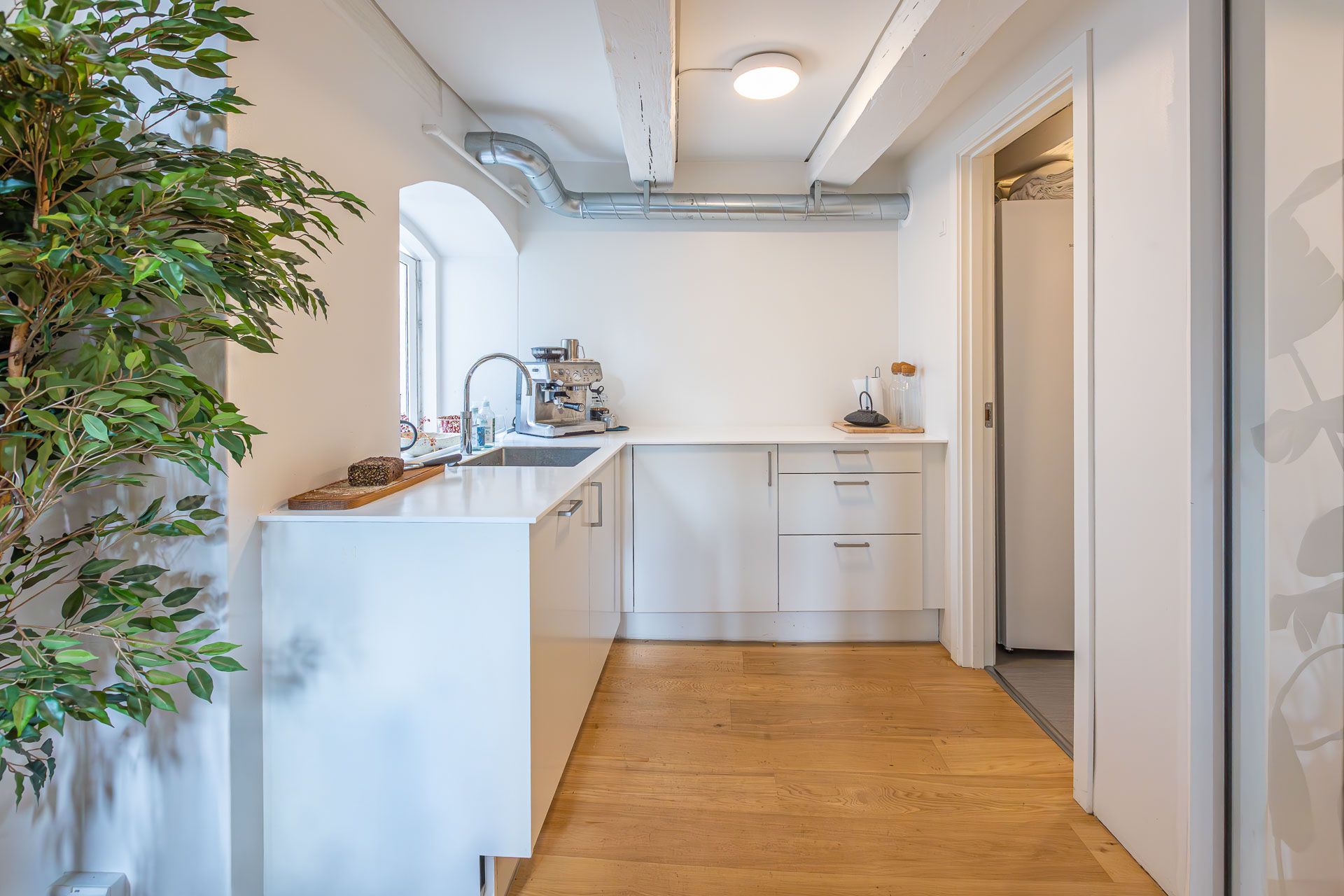 Her er et dejligt lysindfald fra de mange vinduespartier, hvilket bidrager til et godt arbejdsmiljø. Dette lejemål egner sig perfekt til den mindre, kreative virksomhed, der ønsker en central og charmerende beliggenhed i smukke rammer.