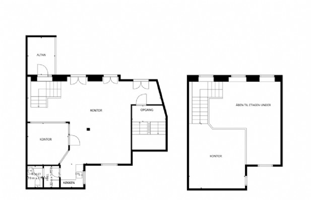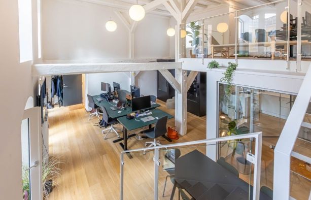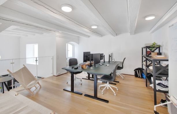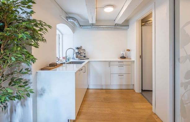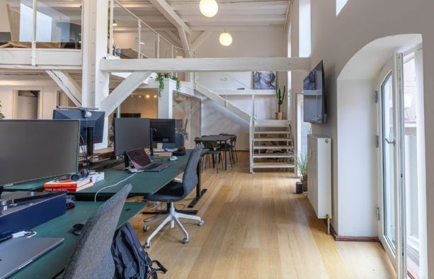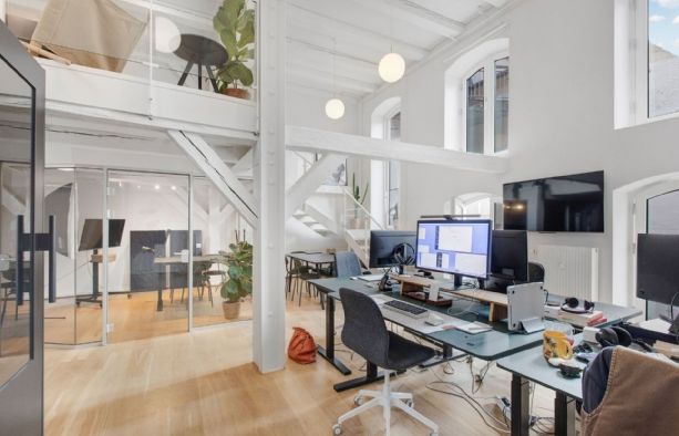 Lækkert højloftet kontor med adgang til kæmpe terrasse og altan