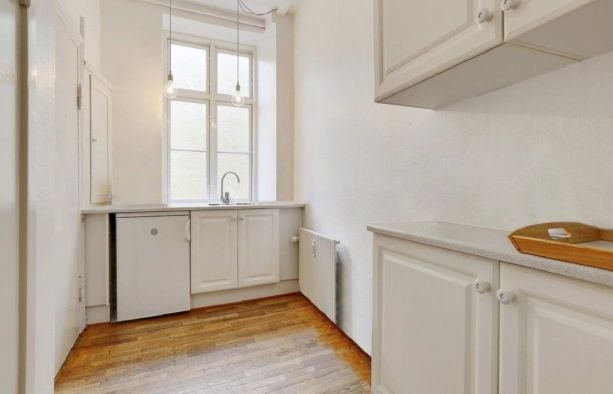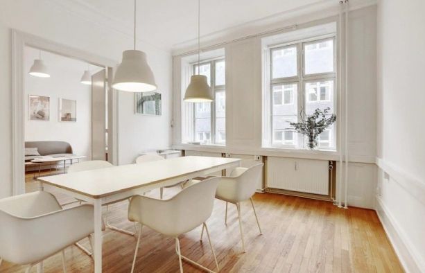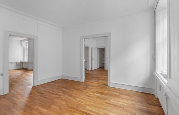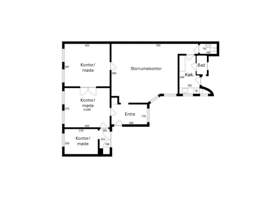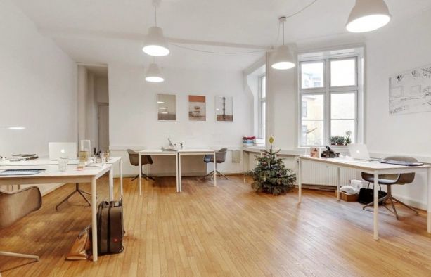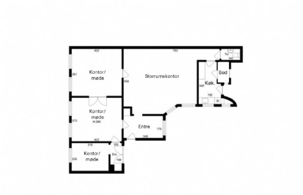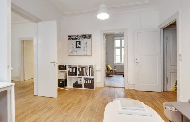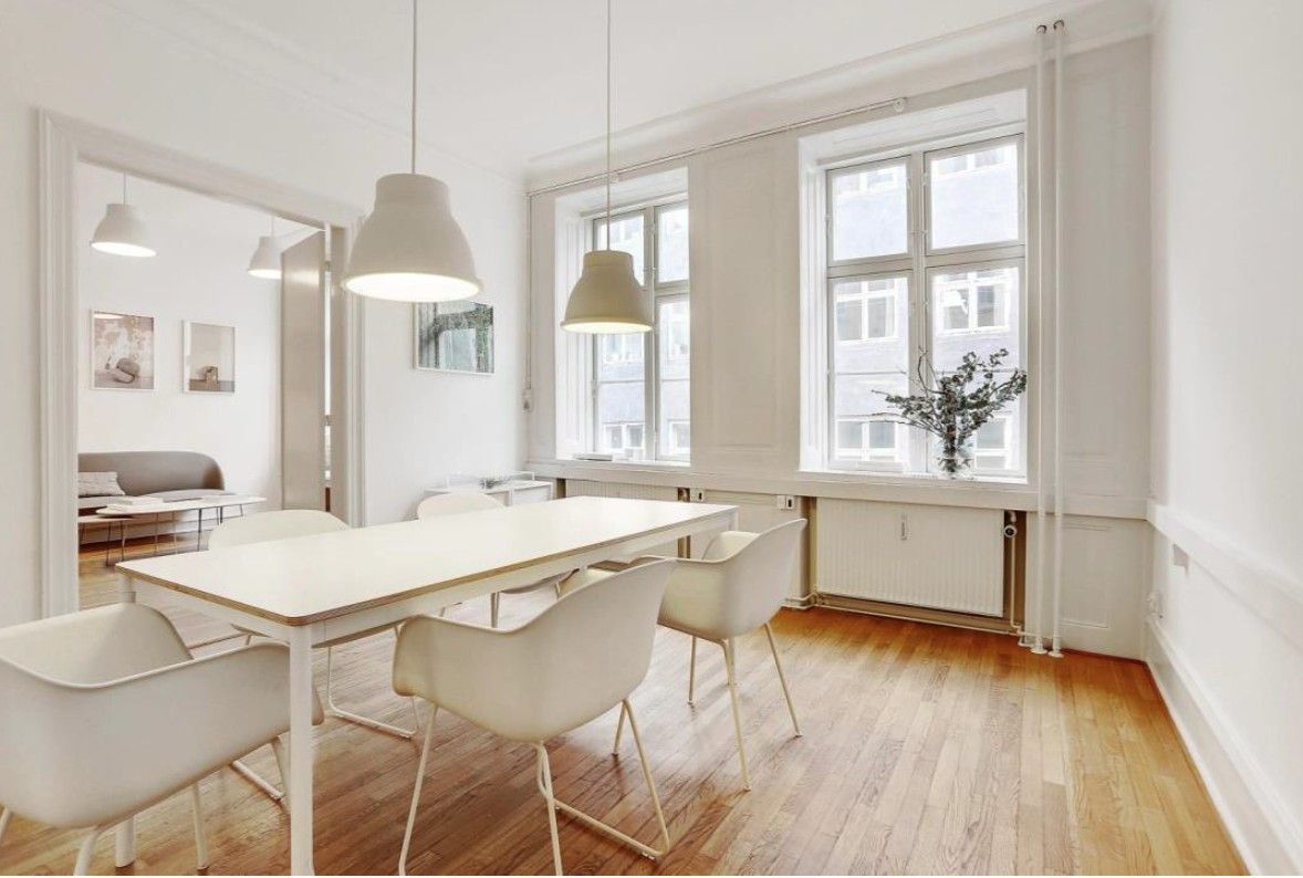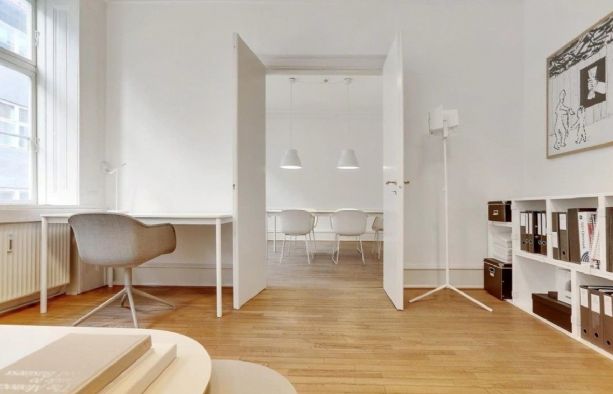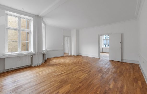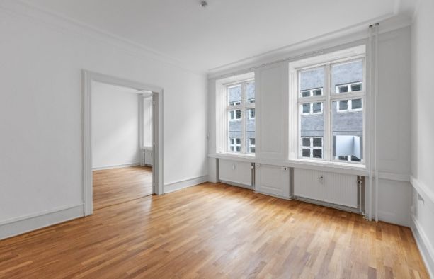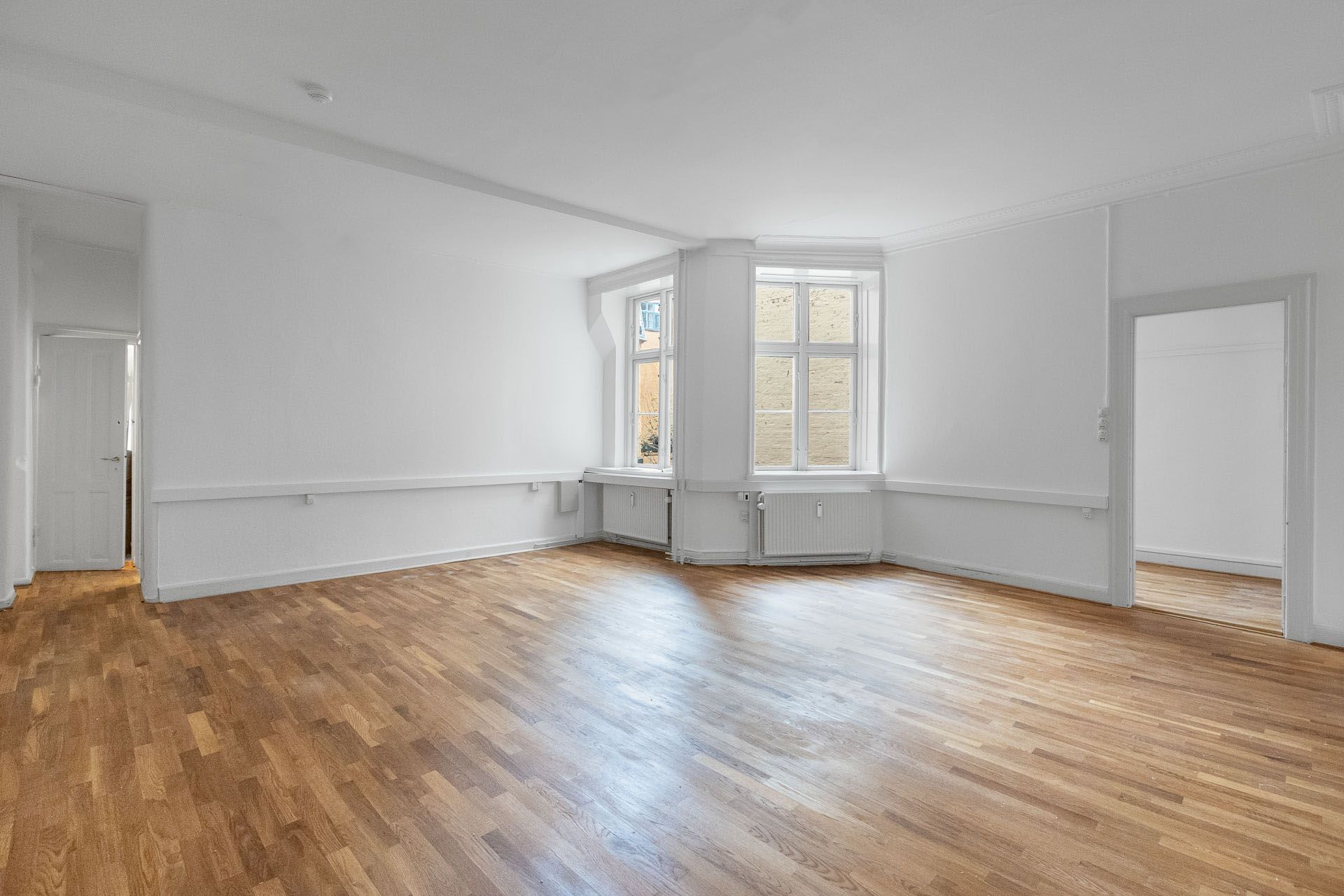 Lyst og indbydende lejemål, der indeholder møblérbar entré 3 kontorer/ mødelokaler i varierende størrelser, hvoraf de to er adskilt af dobbelte fløjdøre, storrumskontor mod gården, køkken samt toilet og bad.
