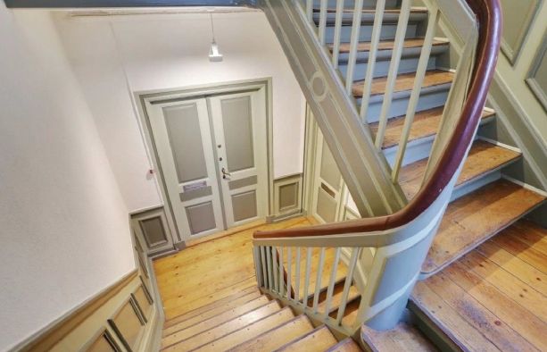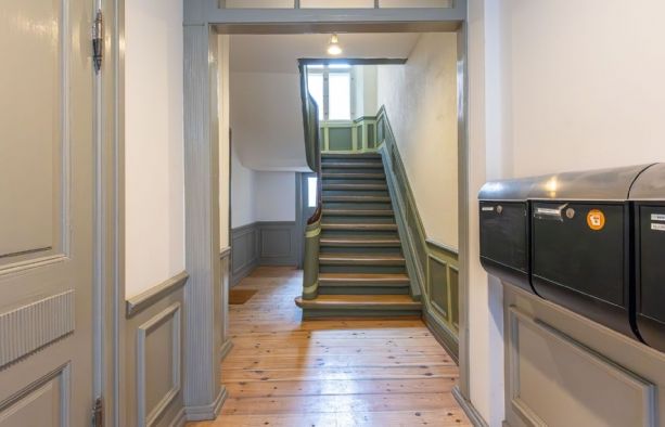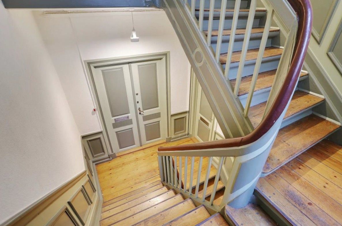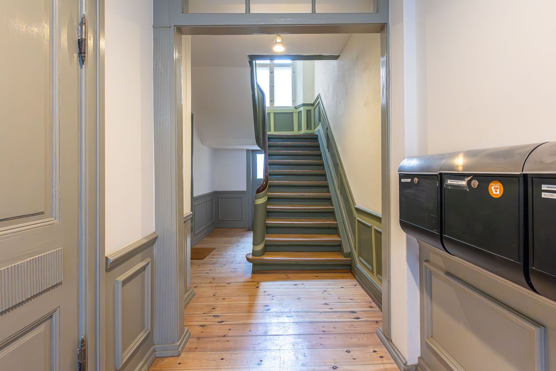 Ejendommen fremtræder flot istandsat og adgang til lejemålet sker igennem en smuk trappeopgang med høje paneler og smukke fyldningsdøre. I ejendommens underetage er der frisør og i den resterende del af ejendommen er der bolig og kontor.