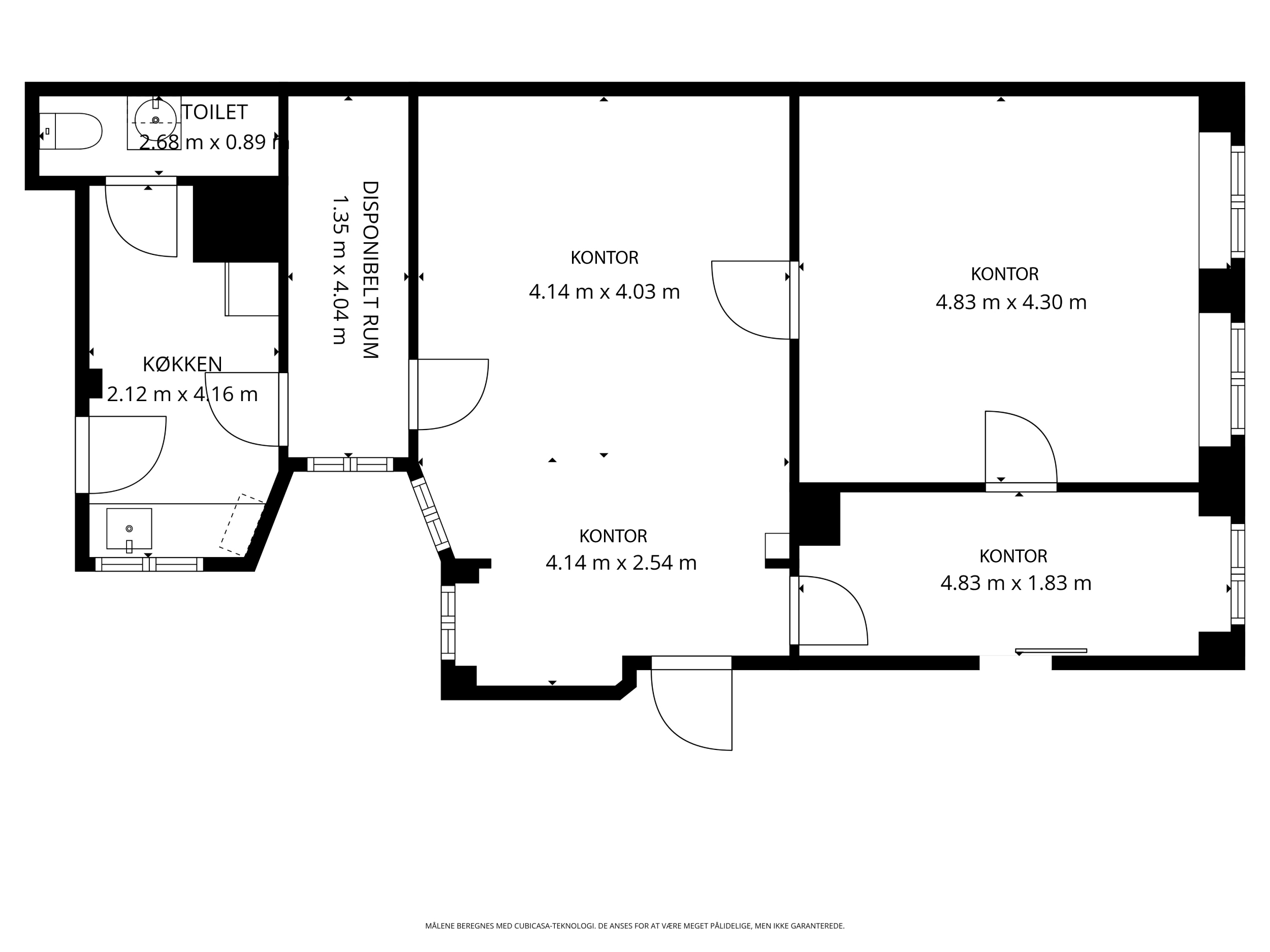 Til omgående overtagelse, udlejes momsfrit kontorlejemål på 108 m².