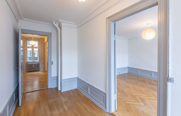 Lejemålet er beliggende i en smuk ejendom opført 1852-53 af kgl. dekorationsmaler Carl Løffler, der blandt andet har dekoreret nogle af lofterne i Thorvaldsens Museum og vægge i Christian den Fjerdes kapel i Roskilde Domkirke.