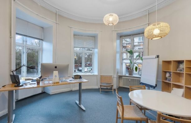 Smukt og yderst herskabeligt hjørnekontor på 322 m²