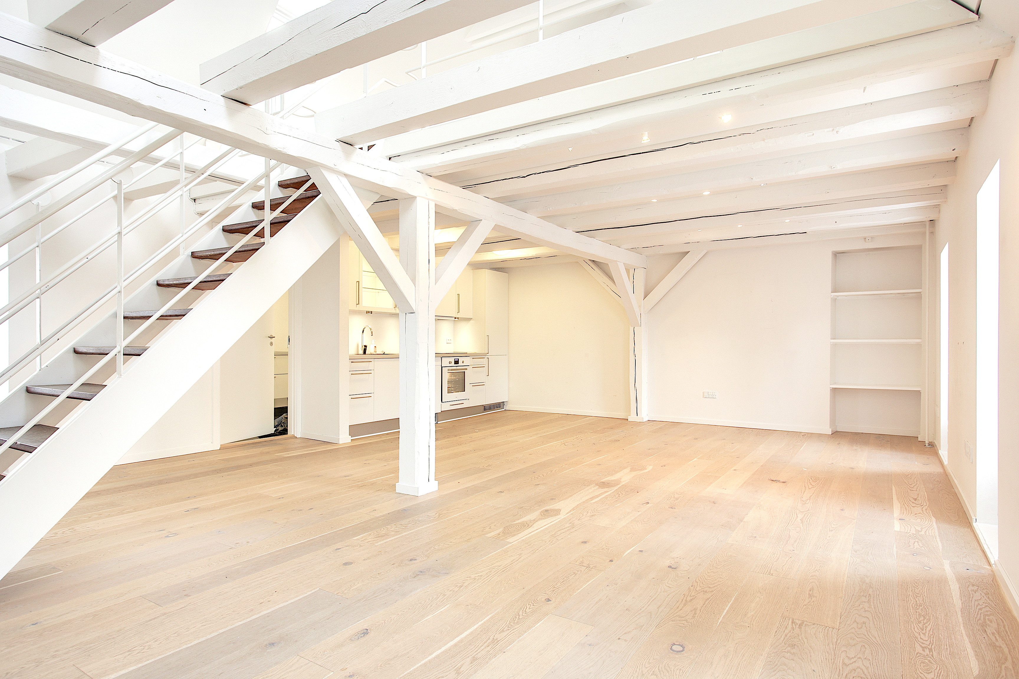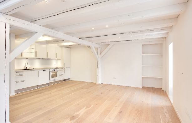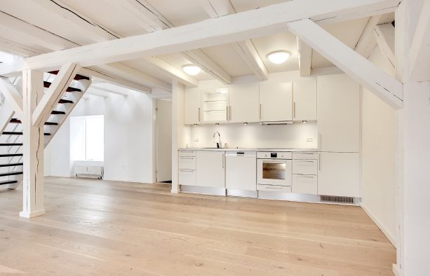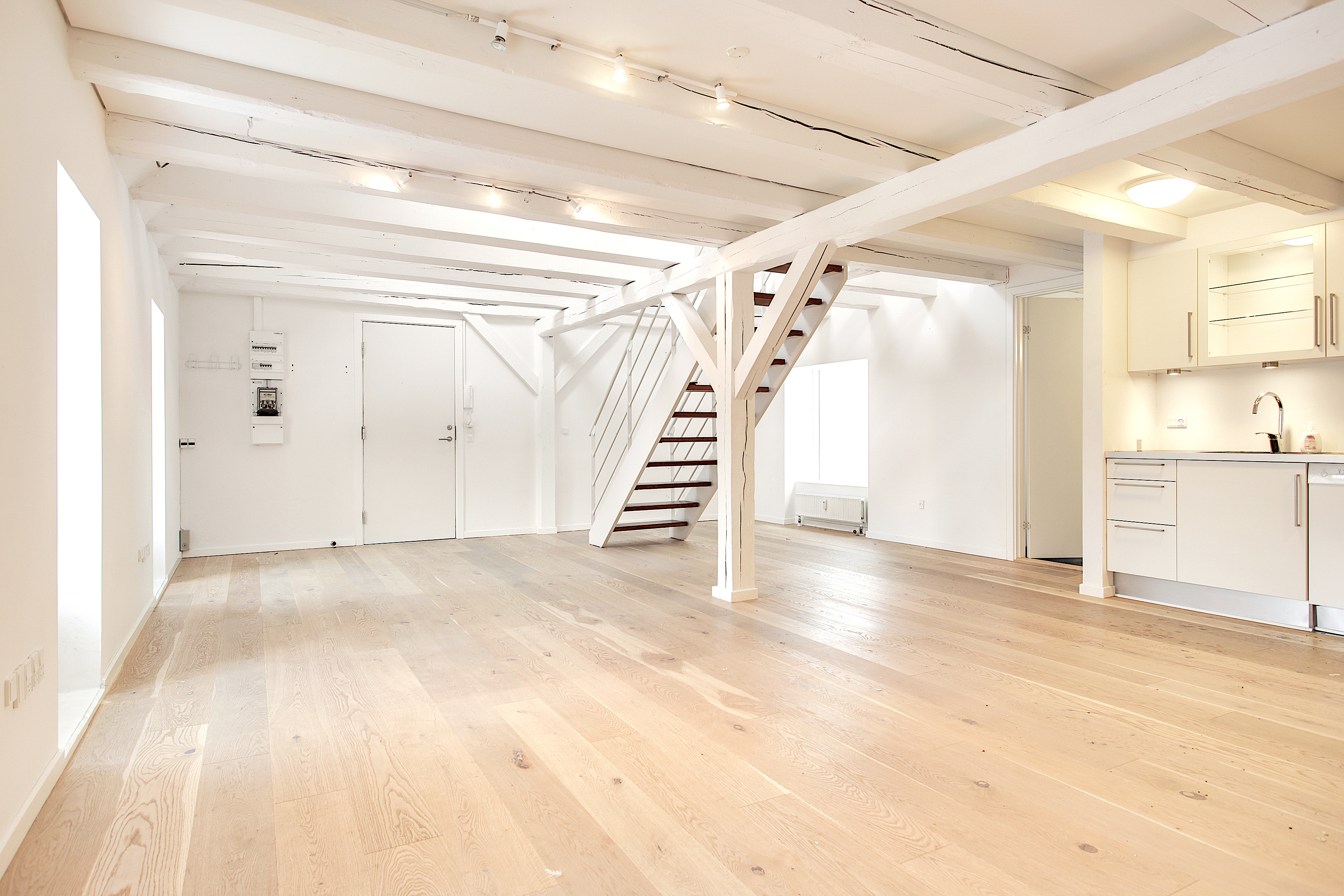 Lyst og charmerende lejemål med blotlagte bjælker - roligt beliggende i baghus