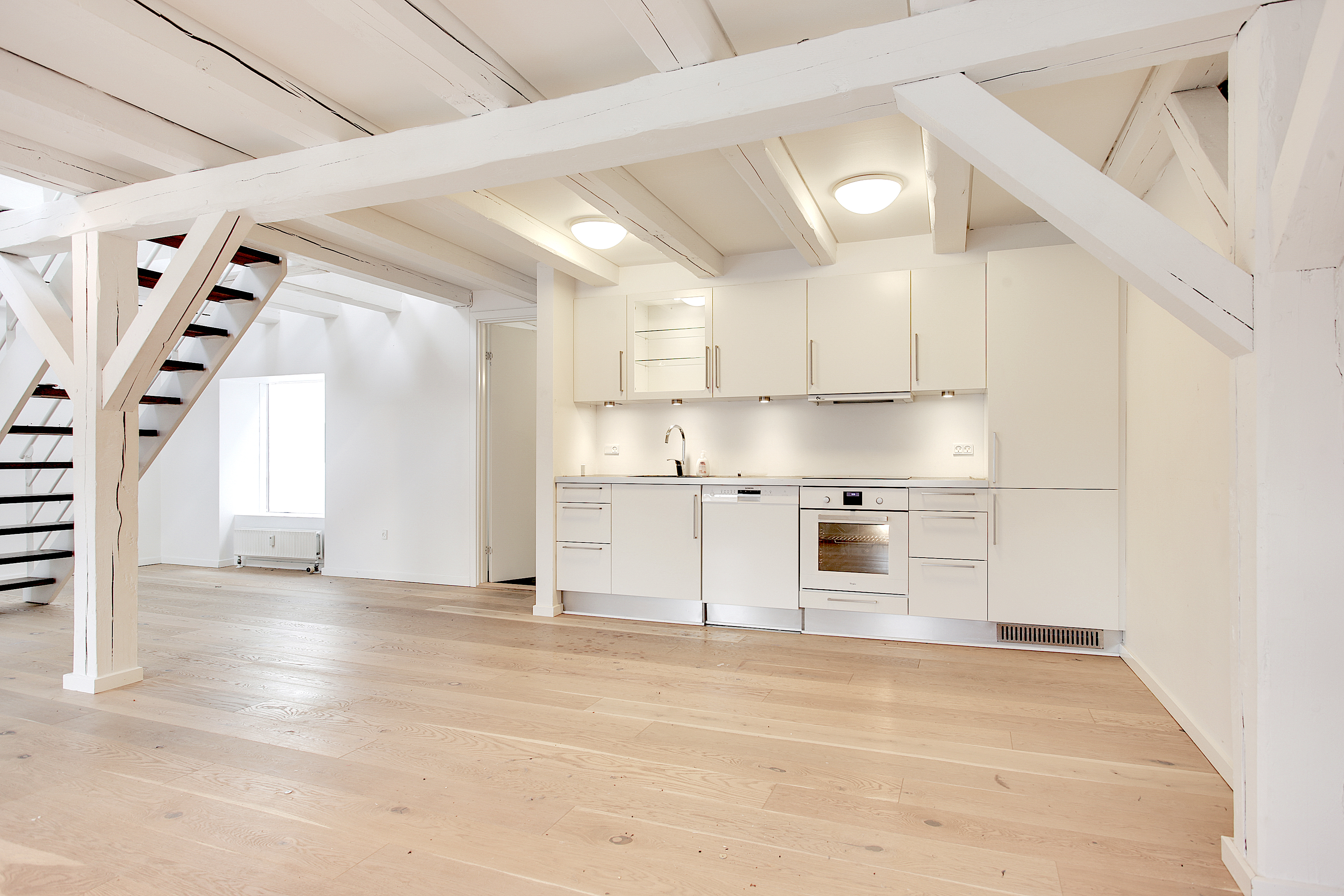 Lejemålet er beliggende på 3. sal og har en stor og højloftet hems med masser af dagslys, hvor der er plads til yderligere ca. 4 arbejdspladser. Der er i lejemålet pænt køkken i hvide elementer med komfur, frys, køleskab samt et toilet med bad.