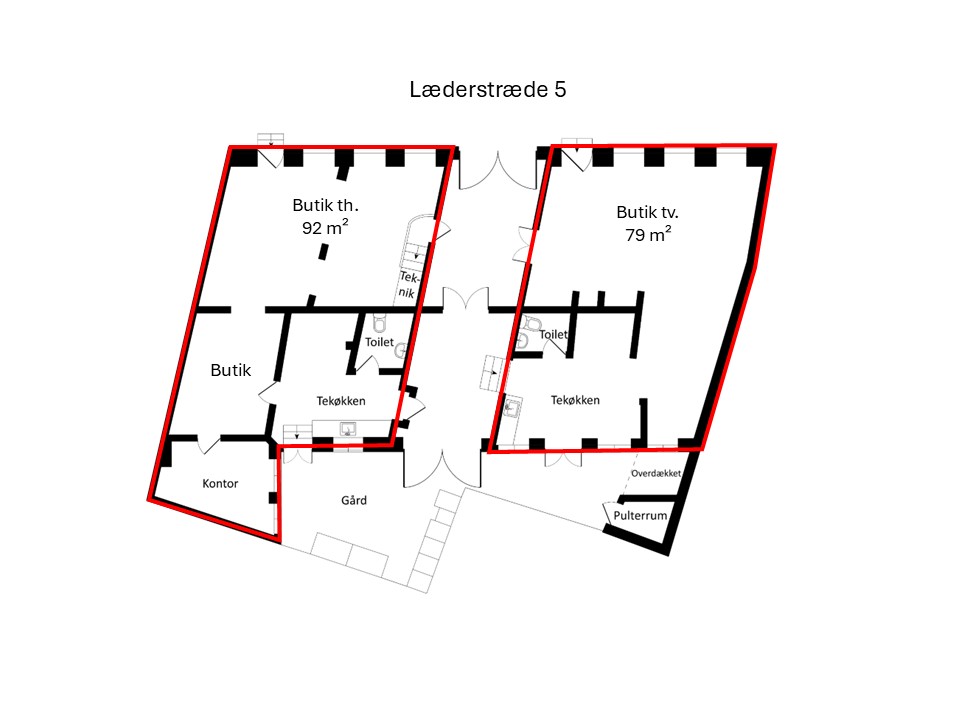 Lejemålet er indrettet med indgang direkte fra Læderstræde. Butikslokalet fremstår med en god loftshøjde og er meget regulært. I lejemålet forefindes nyere designer køkken fra Simonsen & Czechura samt nyt toilet. Alt fremstår i en pæn indbydende stand.