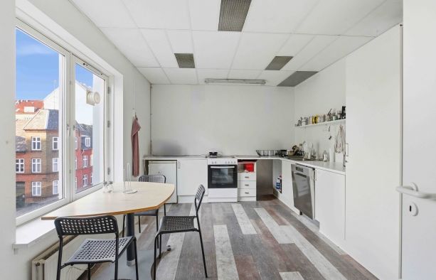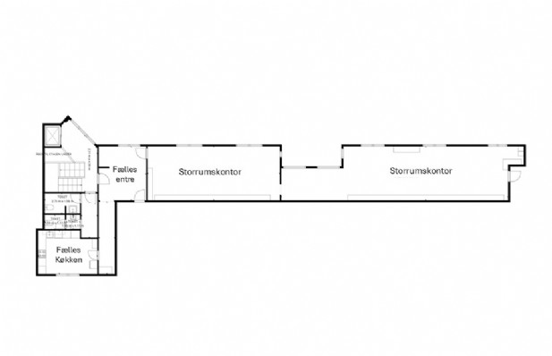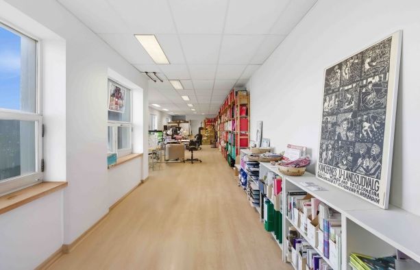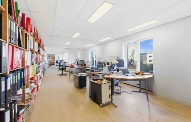Til overtagelse fra marts 2026 udlejes storrumskontor på 150 m², som kan tilgås via trappetårn med elevator.