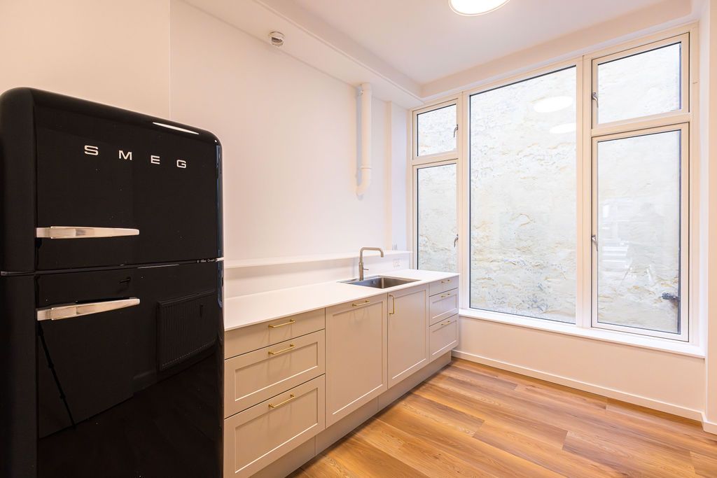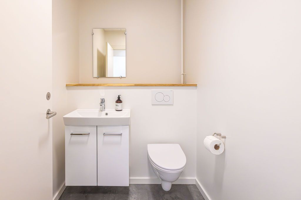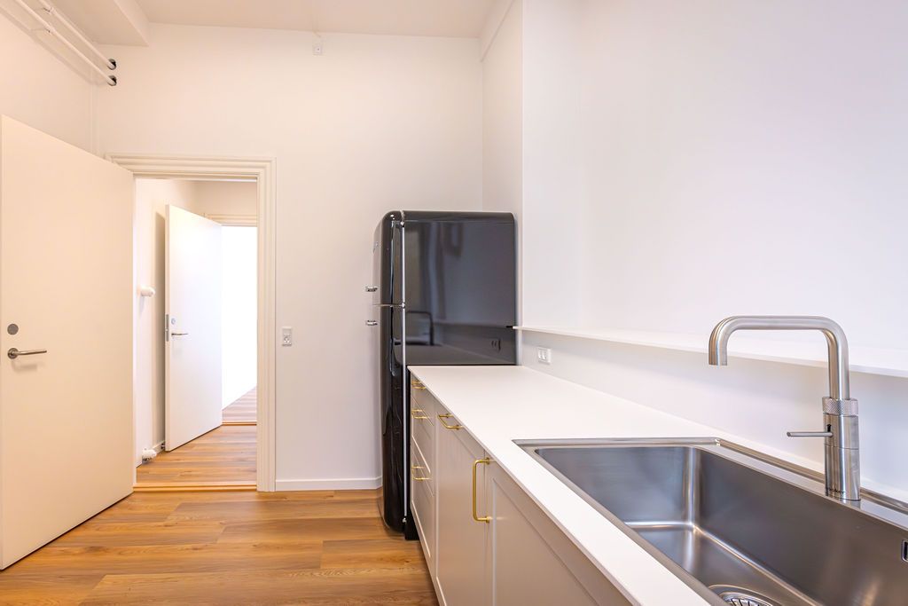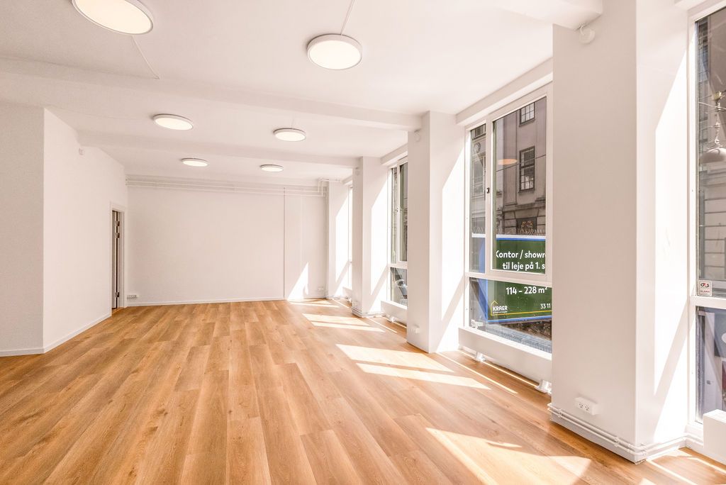 Lejemålet er gennemgribende istandsat og er klar til indflytning og det er ligeledes muligt at leje 114 m² på 2.sal. Der er således mulighed for at leje 114 m² på én etage eller 228 m² fordelt over 2 etager.