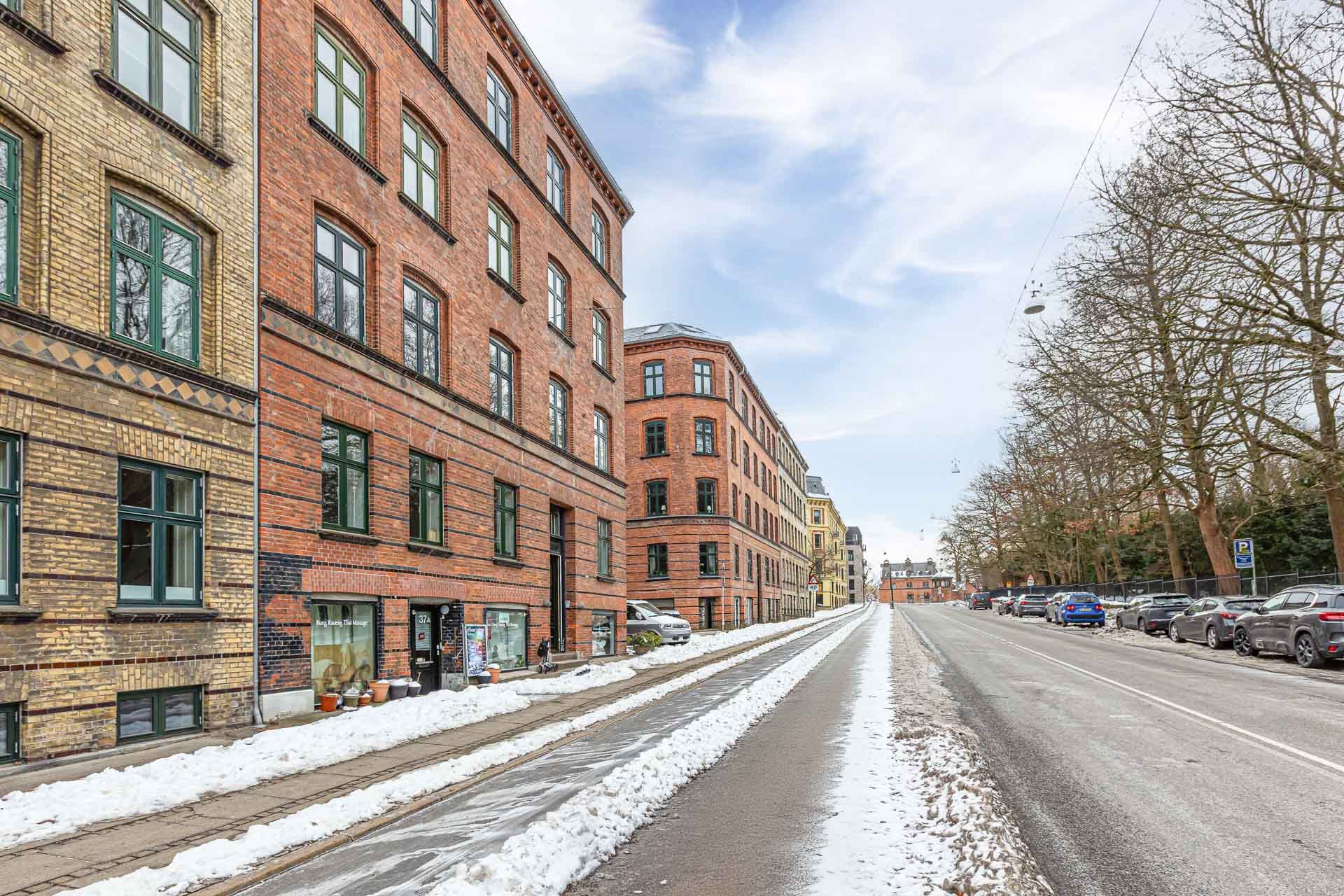 Yderst centralt beliggende på Frederiksberg overfor Søndermarken. Her er der udsigt til grønne omgivelser, men alligevel er man centralt beliggende, hvor man indenfor 1.200 meter finder både Frederiksberg Centeret, Frederiksberg Alle Metro, Enghave Plads Metro og Carlsberg Station.