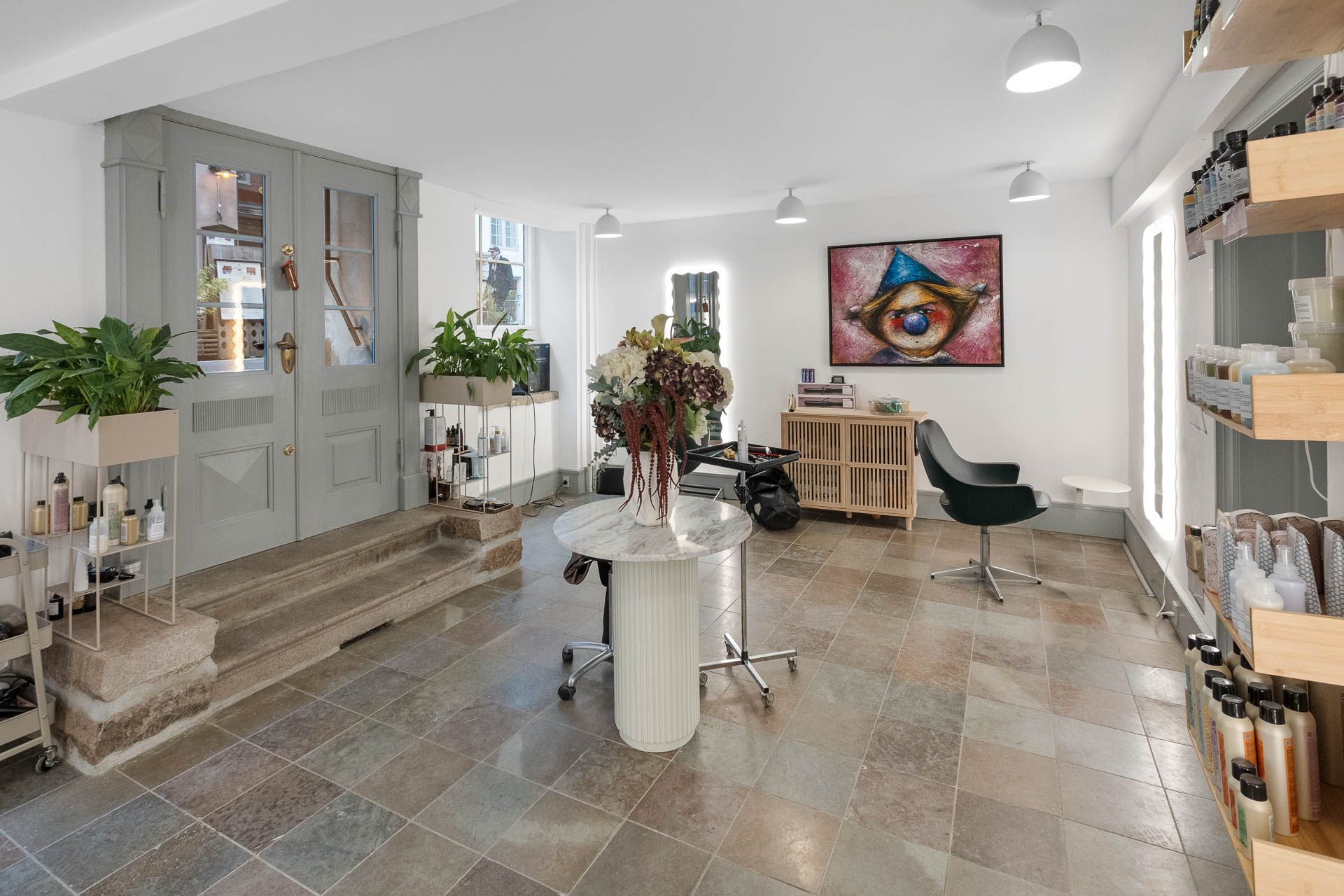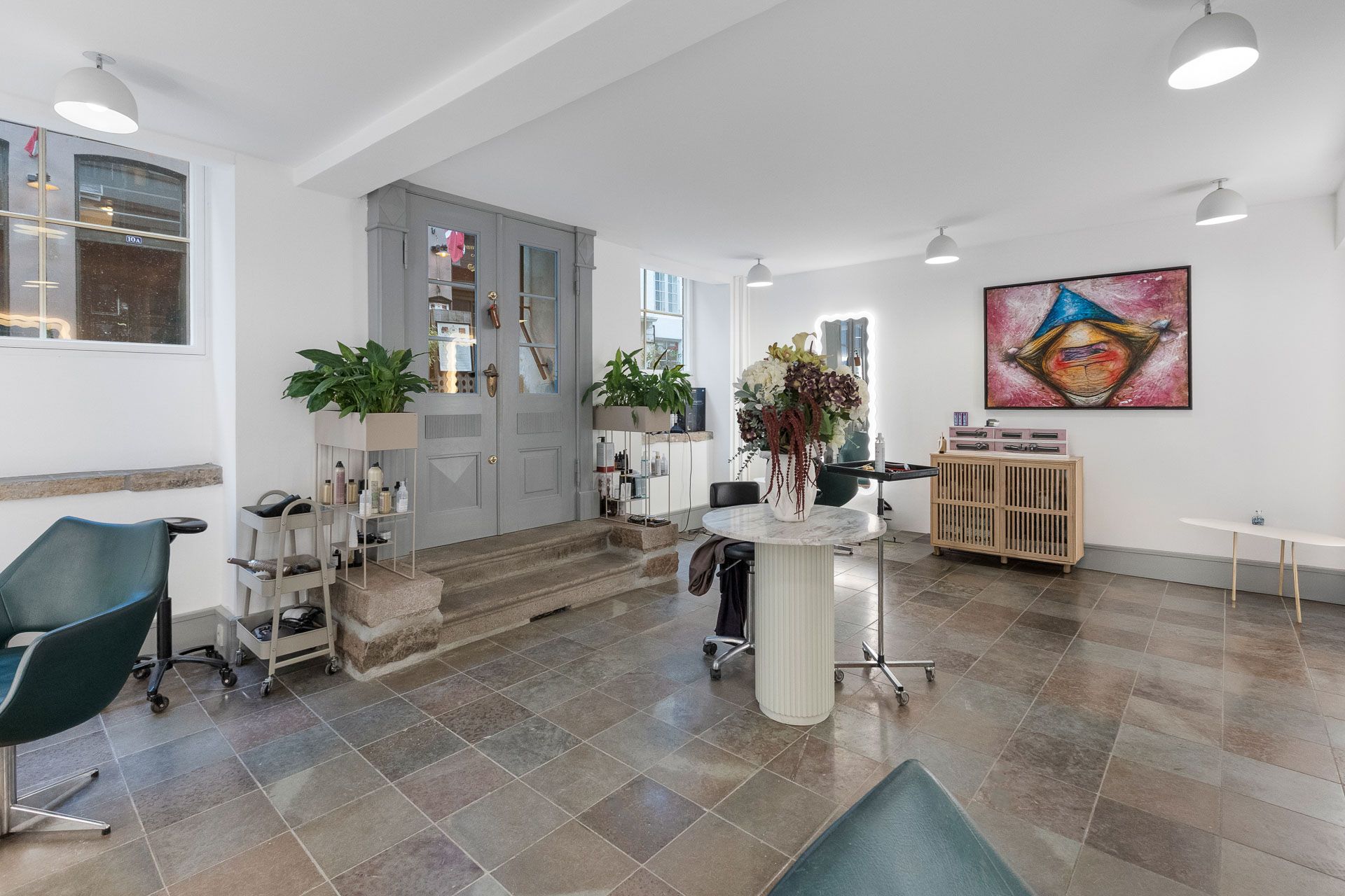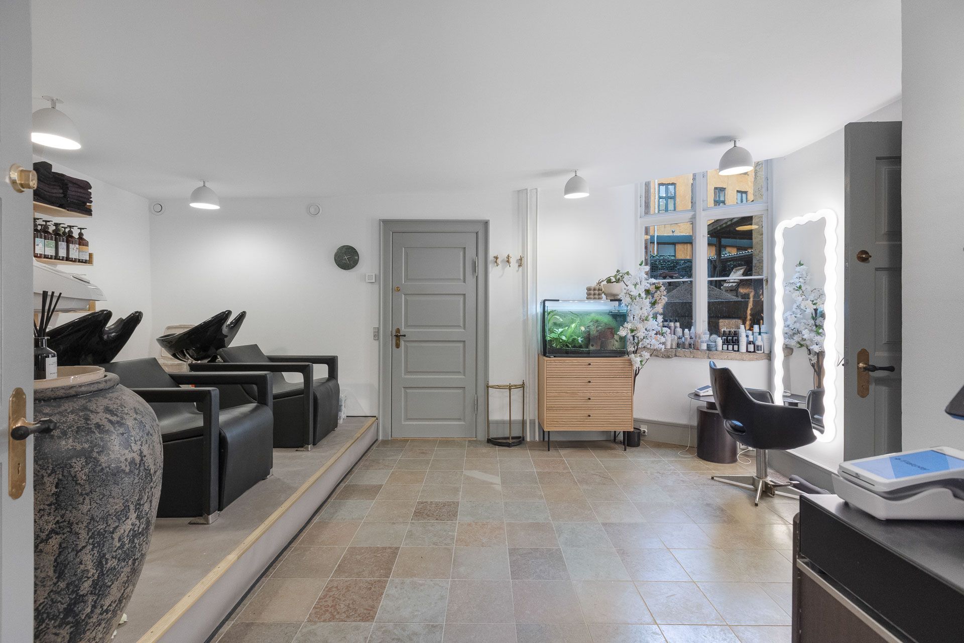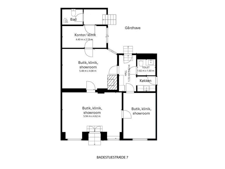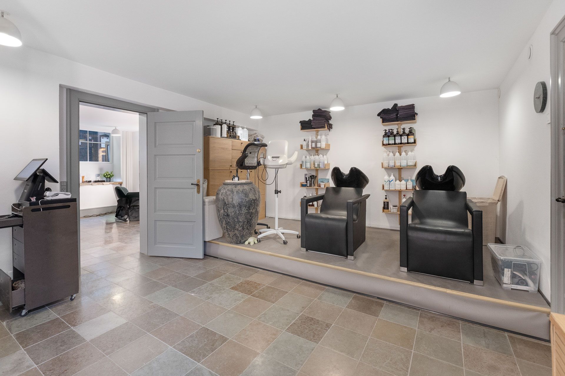 Ideelt til frisør, klinik, butik eller kontor - her udlejes ikke til café, bar, mad eller lignende. I baglokalet er der trukket vand og afløb i væggen til brug for vaskestole eller lignende.