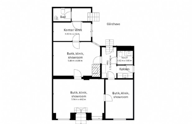 Søger du noget ud over det sædvanlige, så er her muligheden for at leje et gennemgribende istandsat erhvervslejemål på 112 m². Lejemålet er mod gaden indrettet med to store regulære rum, som let kan ændres til et stort åbent rum. Derudover rummer lejemålet 2 baglokaler, tekøkken samt 2 toiletter, hvoraf det ene har brus.