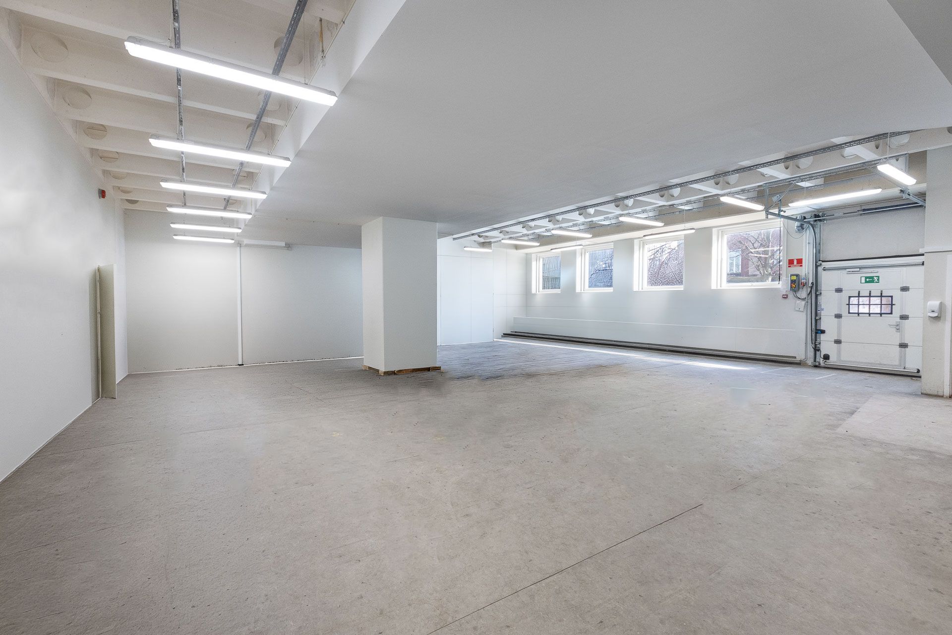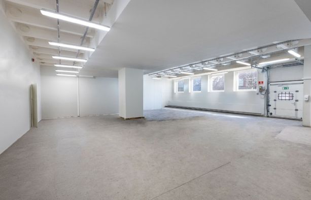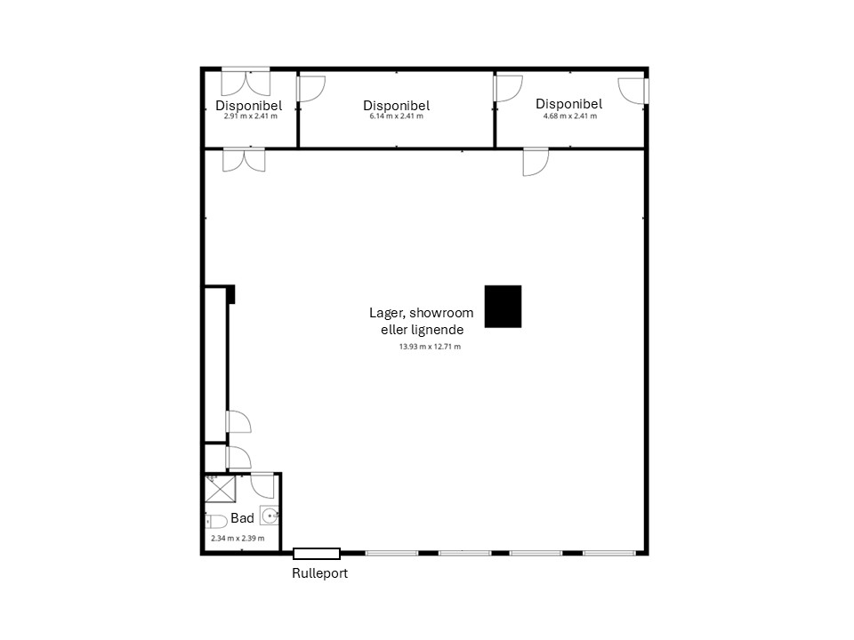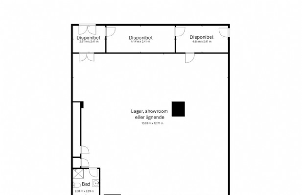 Der er niveaufri adgang til lejemålet via rulleport, hvor lejemålet indeholder ét stort regulært rum med god loftshøjde og fornuftigt lysindfald fra de 4 vinduespartier. Derudover indeholder lejemålet 3 baglokaler, hvor der let kan etableres tekøkken i det ene samt toilet med bad.