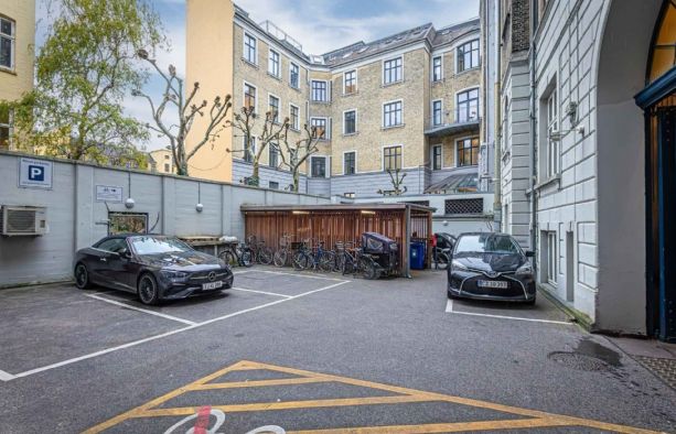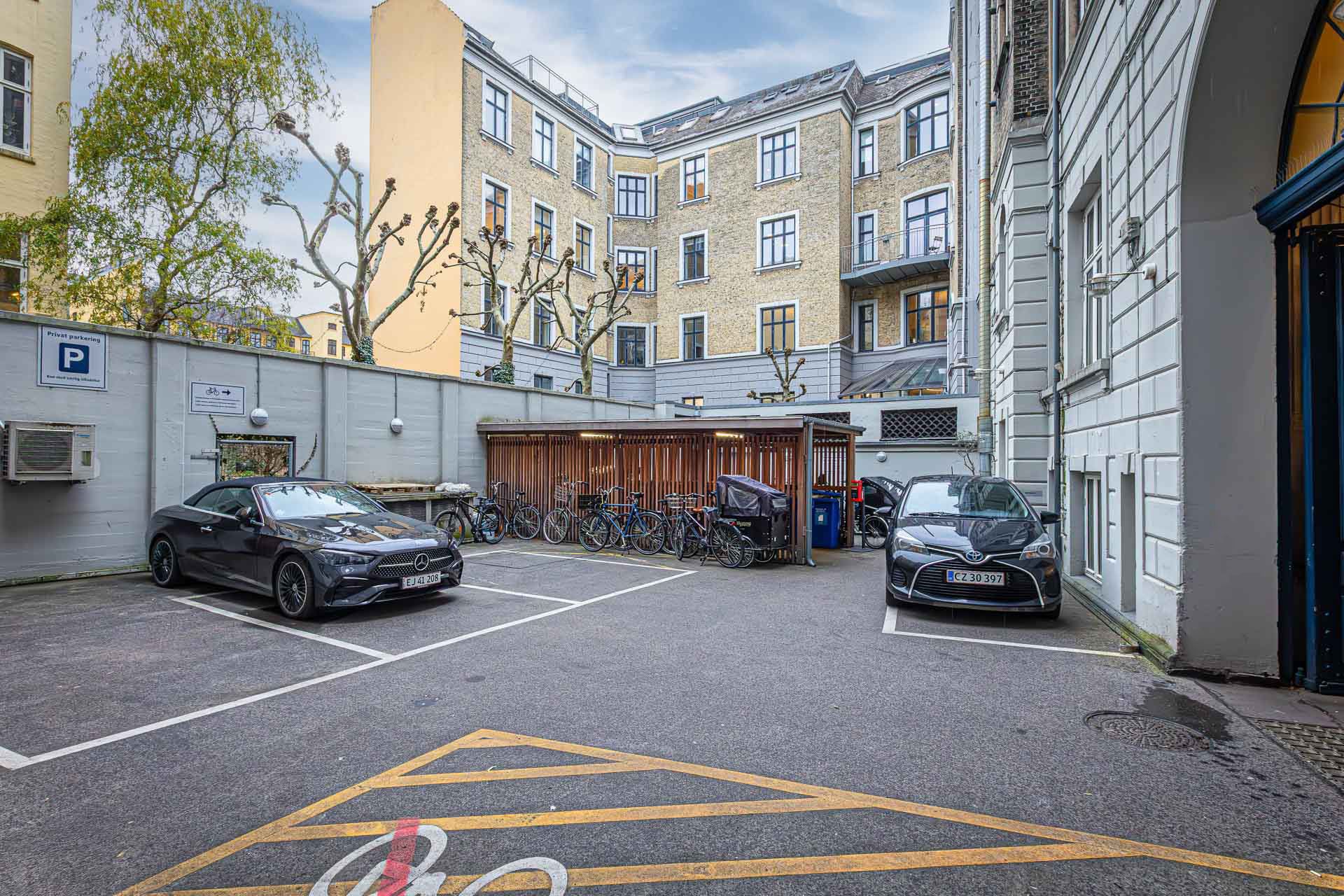 Desuden gode parkeringsforhold foran ejendommen, samt parkeringshuset på Israels Plads og flere parkeringshuse i Nyropsgade indenfor få hundrede meter. Hyggeligt kvarter med alt fra caféer, gallerier, værksteder, antikvariater mm. på Nørre Farimagsgade og de omkringliggende gader.