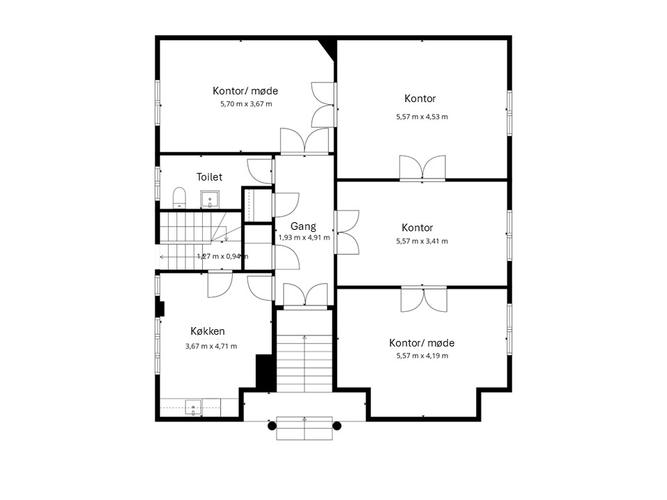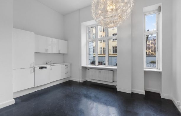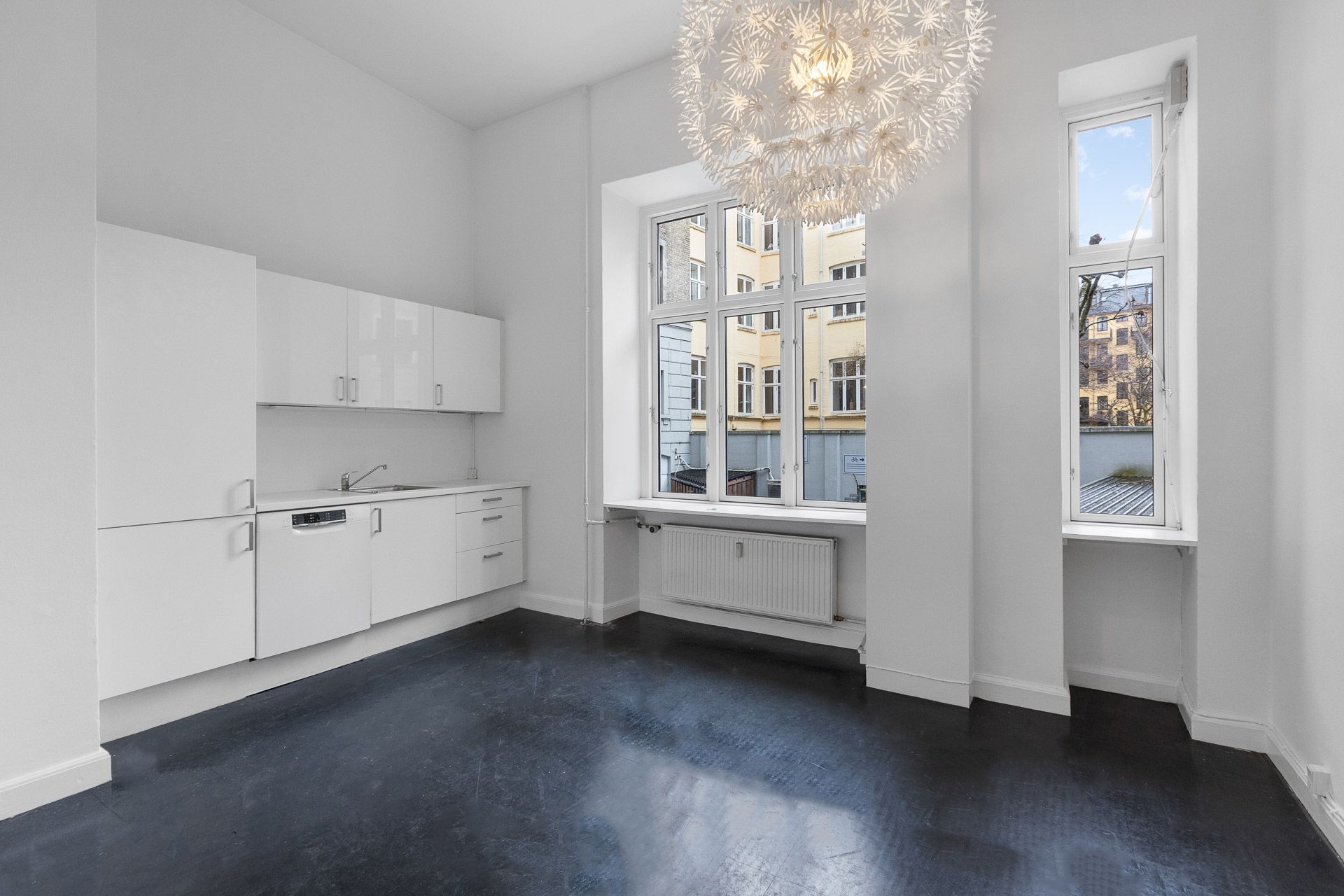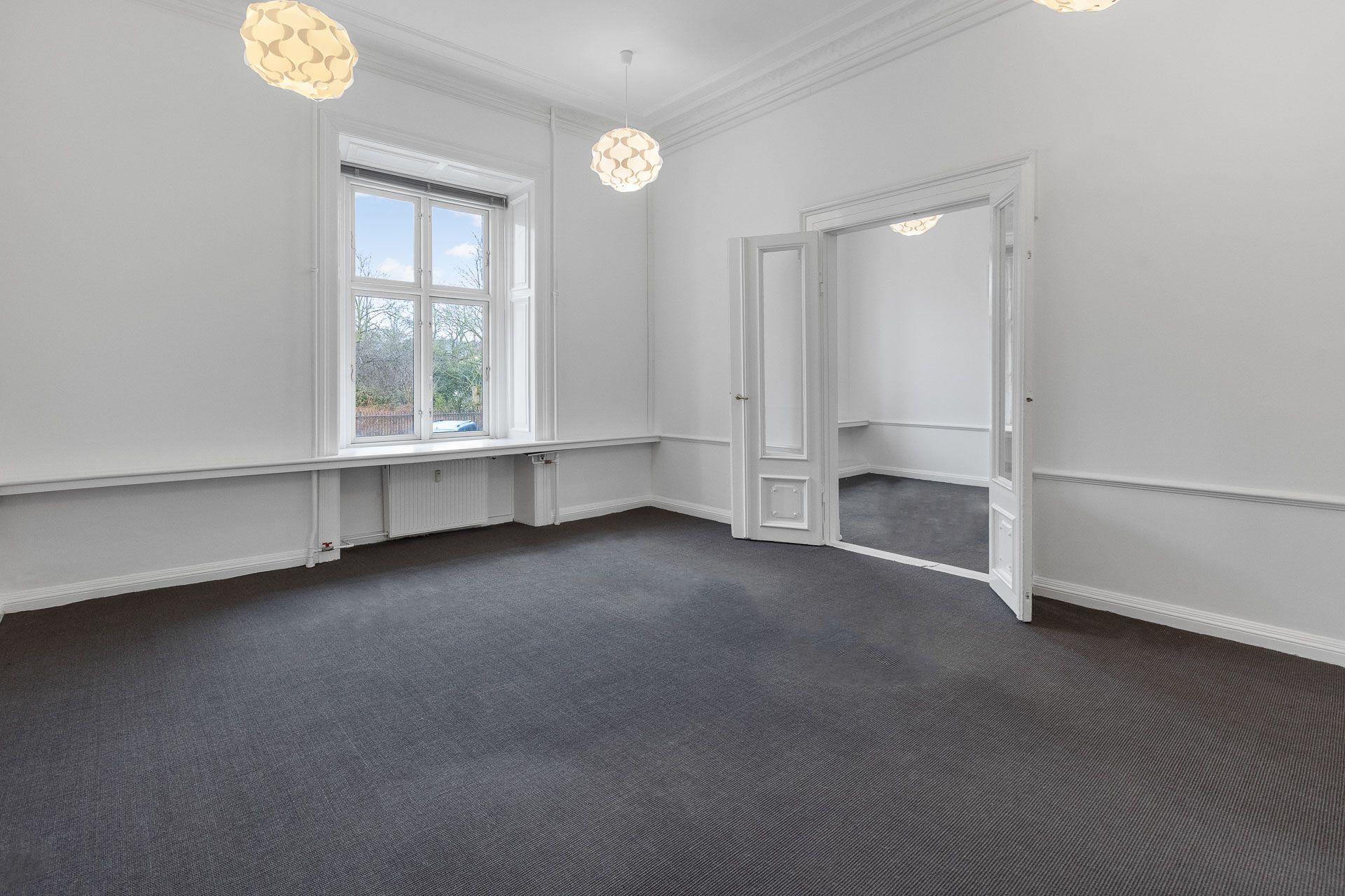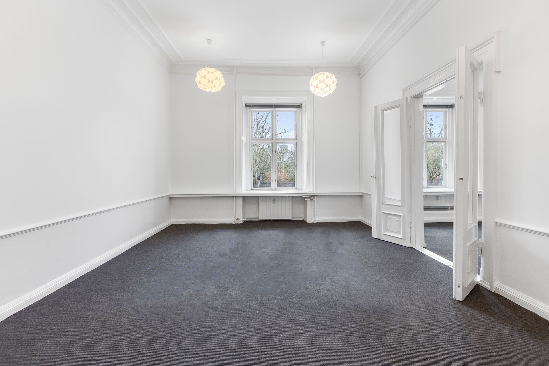 Lejemålet indeholder 3 stuer/kontorer en suite med et skønt lysindfald og udsigt til Ørstedsparken. Derudover indeholder lejemålet godt og regulært kontor/møderum mod gården, bred fordelingsgang med indbyggede skabe, stort køkken med spiseplads og rummeligt badeværelse.