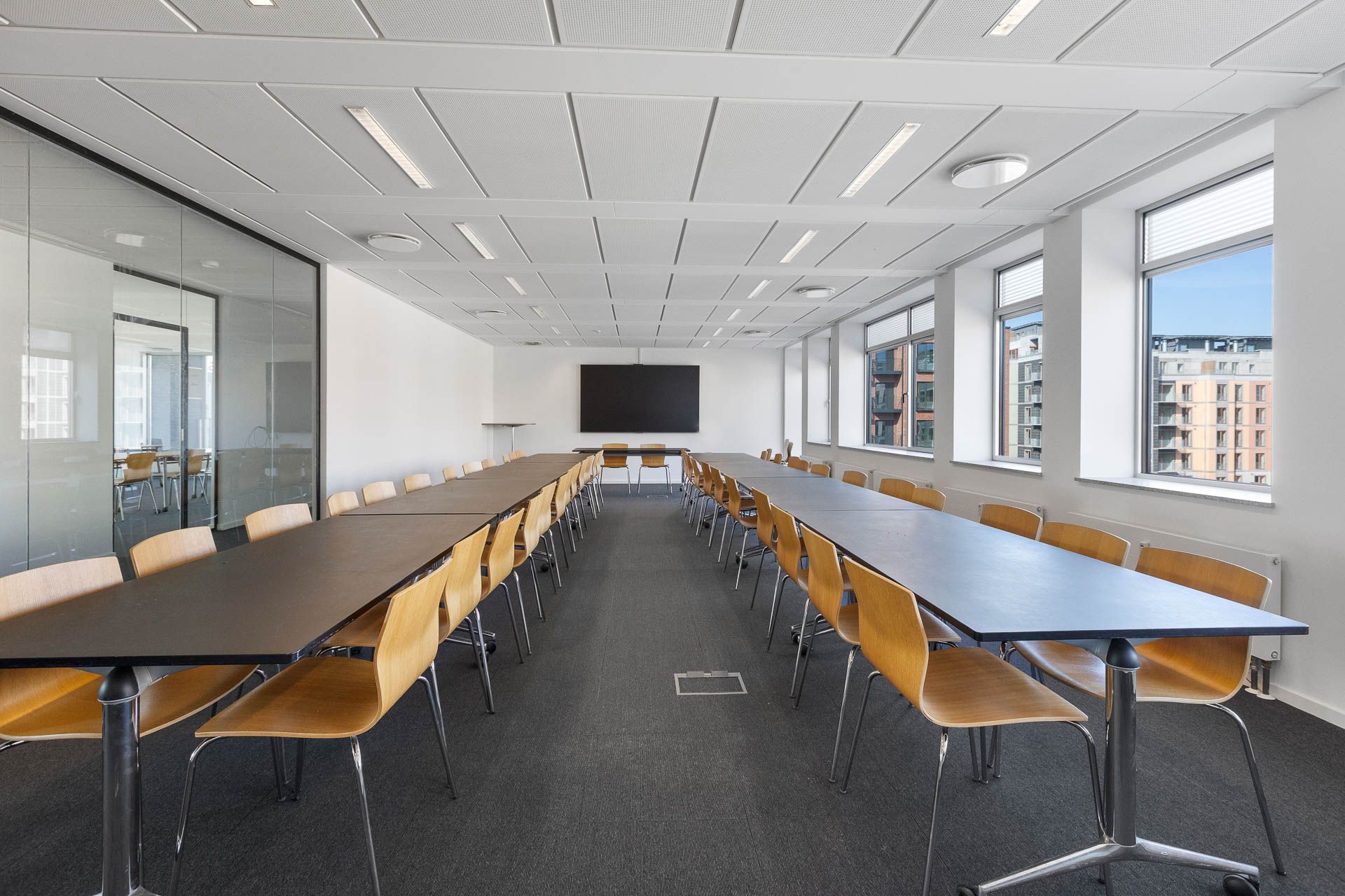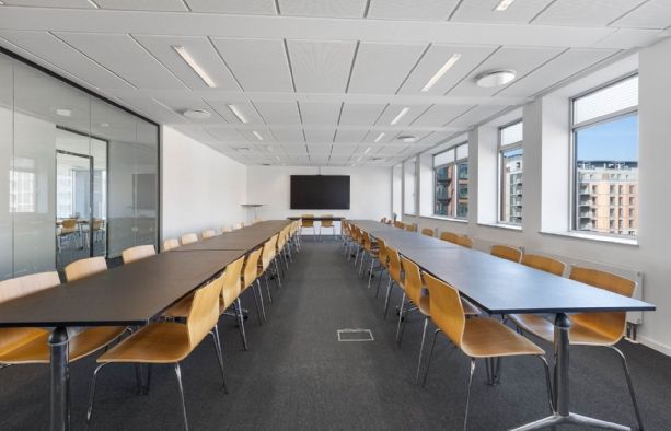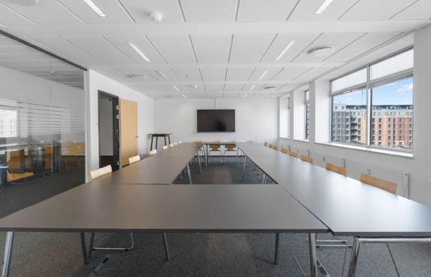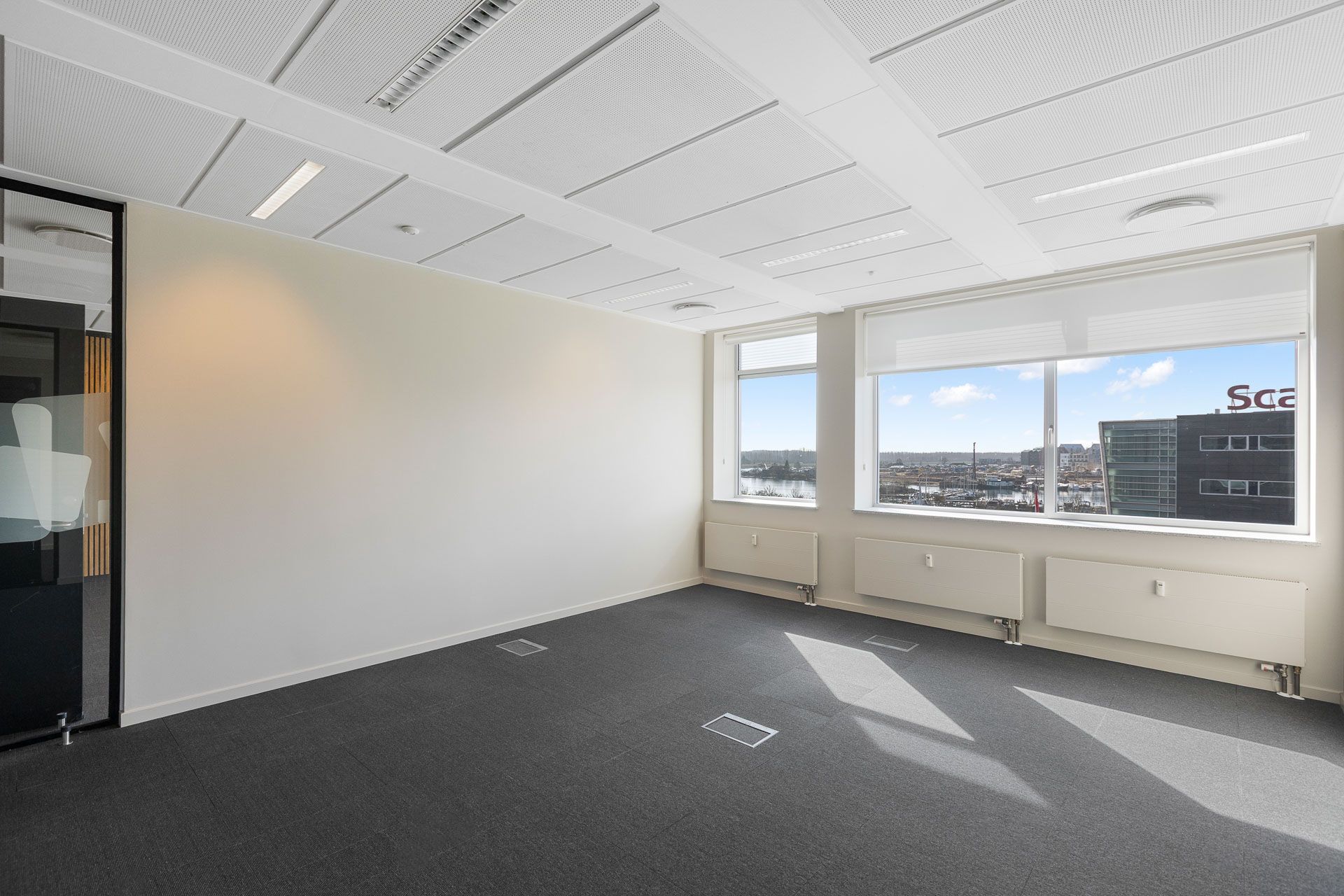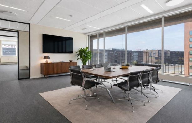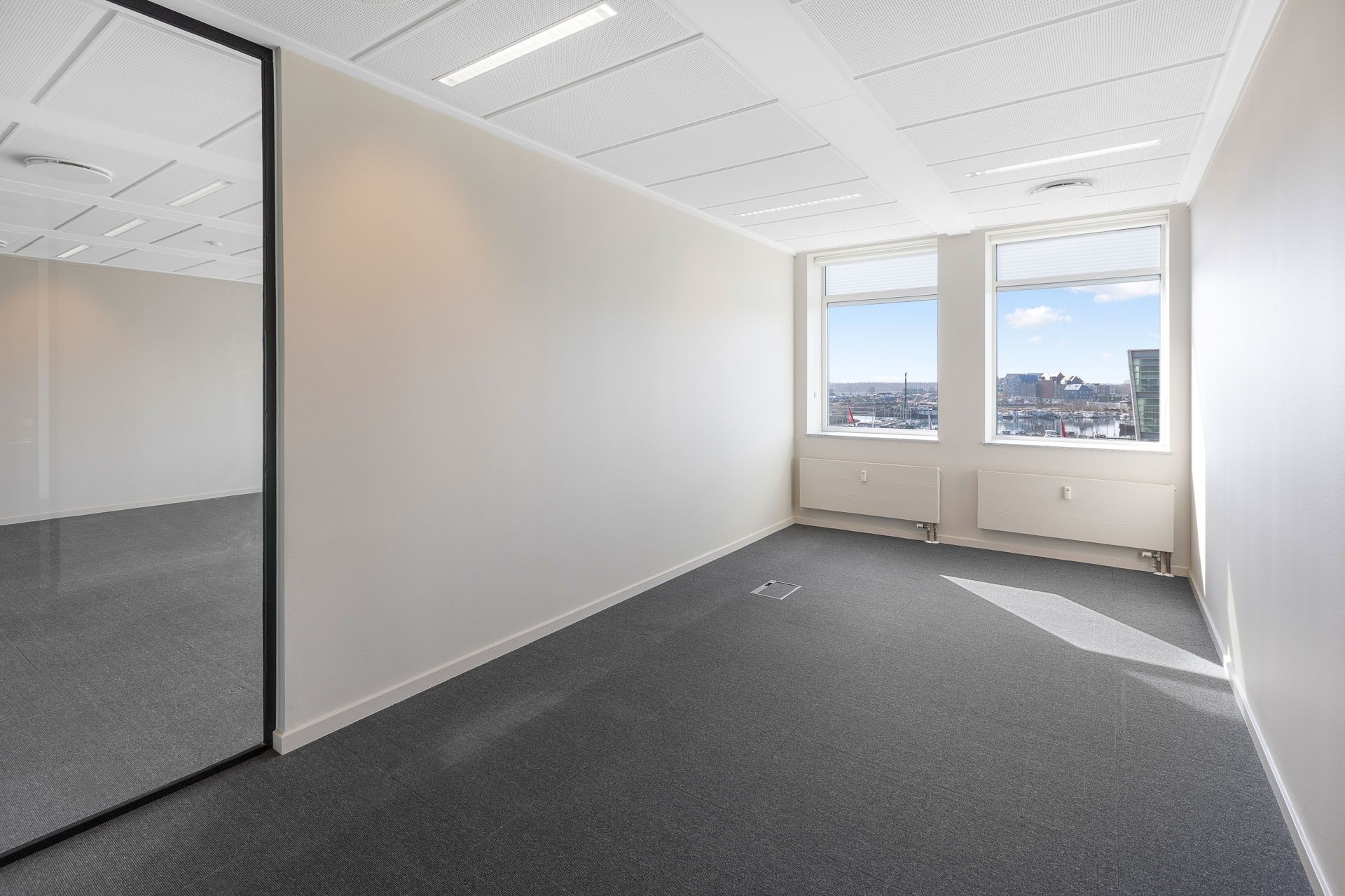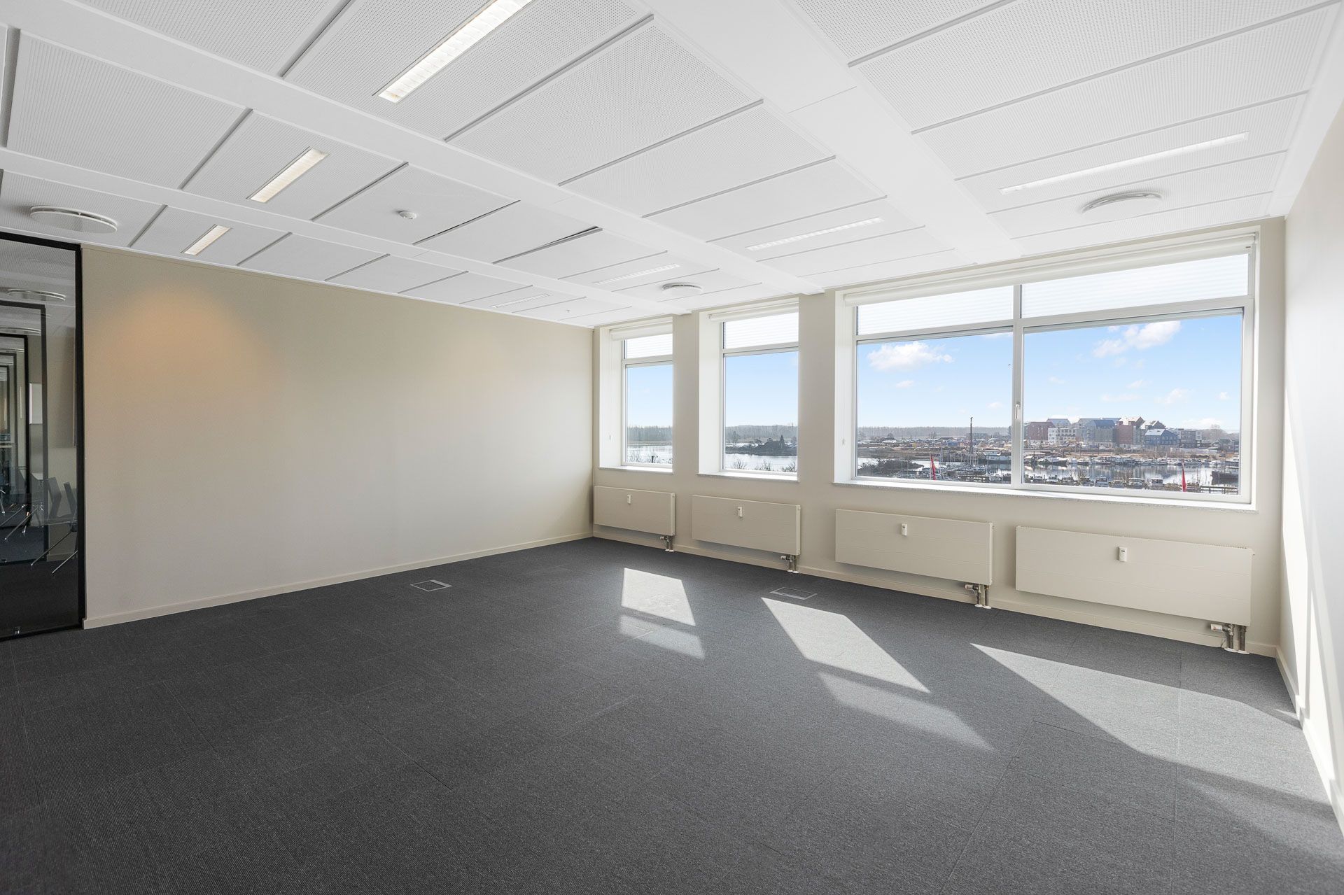 Fuldt serviceret kontor med udsigt til havnen