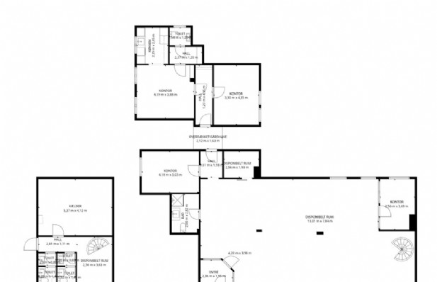 Lejemålet er beliggende i en pæn hjørneejendom og udgør i alt 260 m² i stueplan samt ca. 50 m² højloftet, tør kælder med direkte intern adgang.