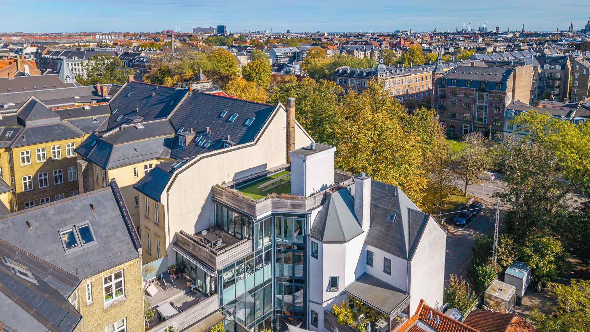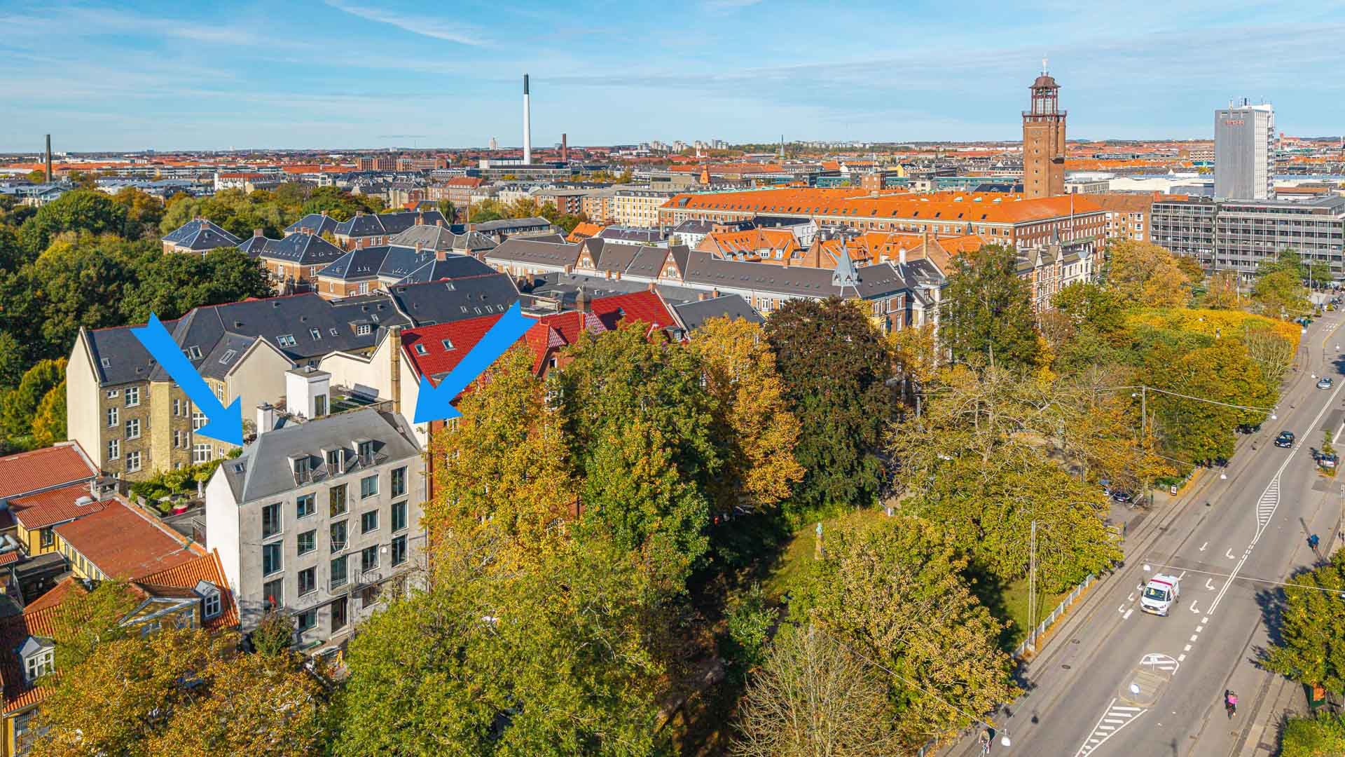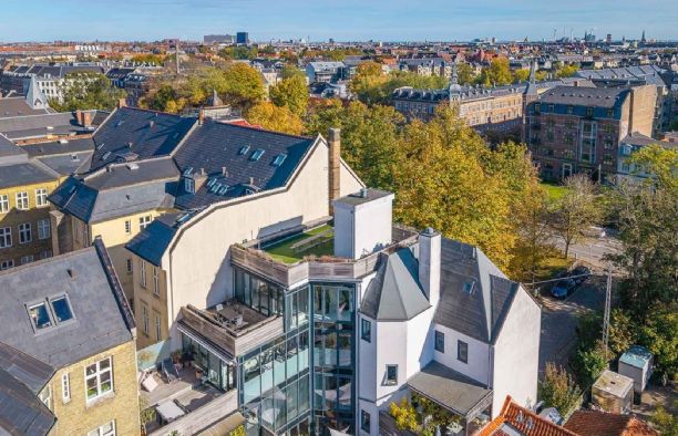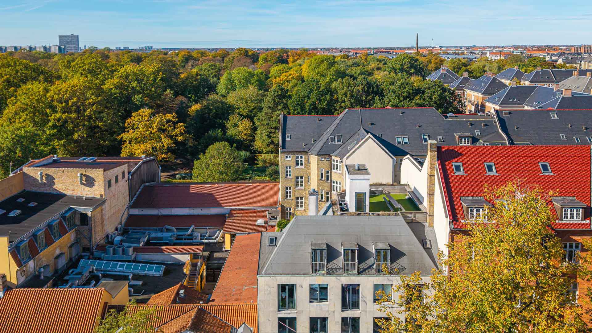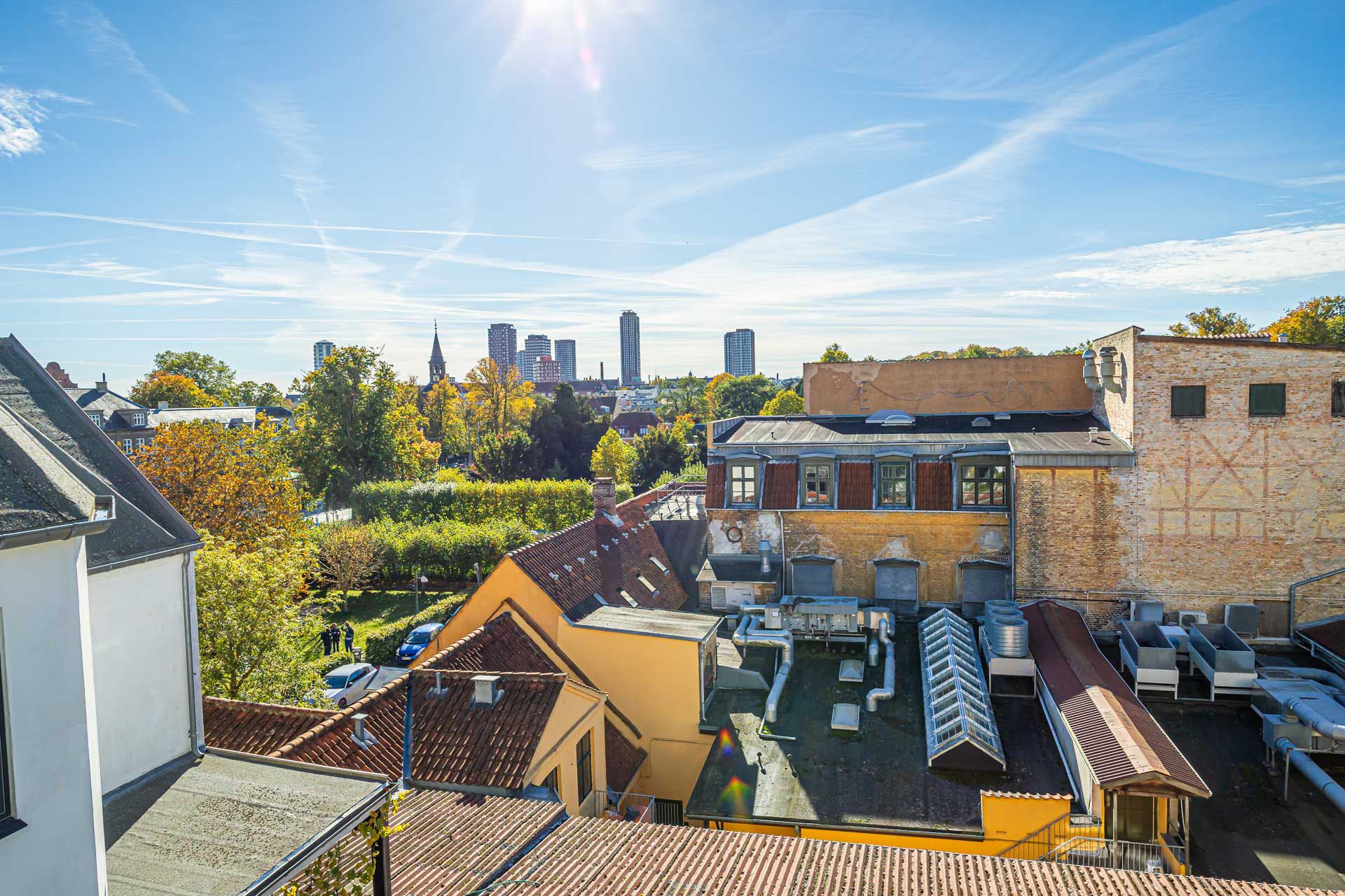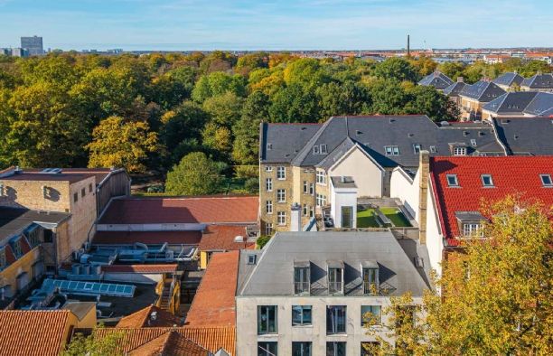 Fra elevatoren er der desuden adgang til ejendommens fælles tagterrasse, som har en fantastisk udsigt over Frederiksberg og København.