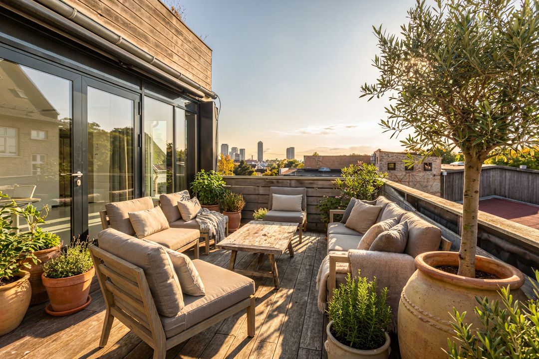 vinduespartier og udgang til en privat tagterrasse.