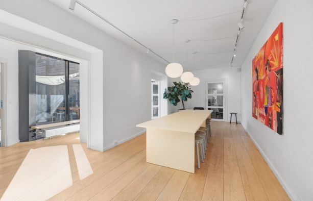 Lejemålet omfatter hele ejendommens 1. sal og fordeler sig rundt om den solrige og private gårdhave.