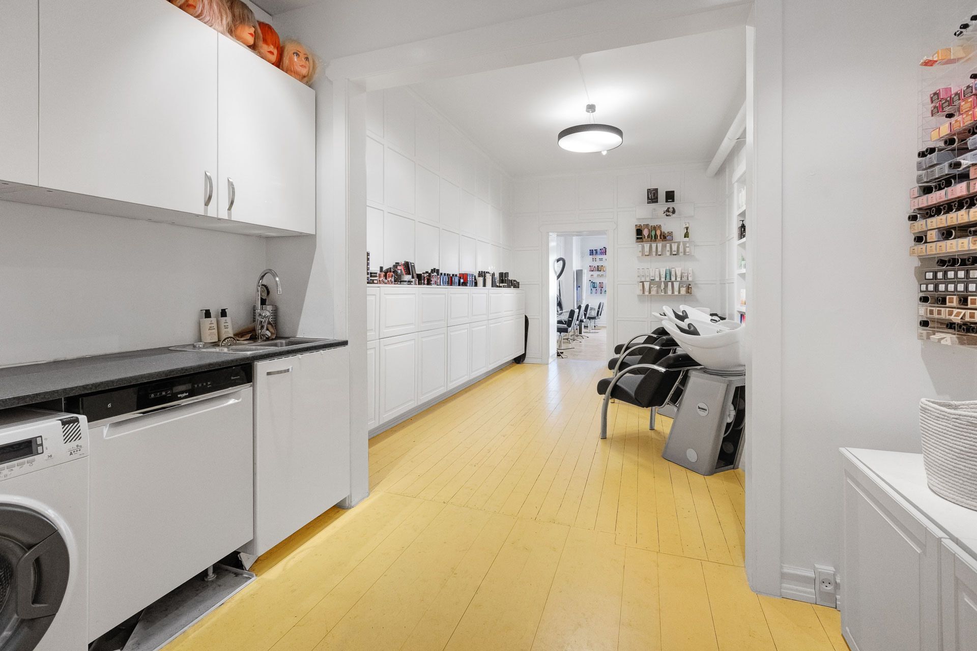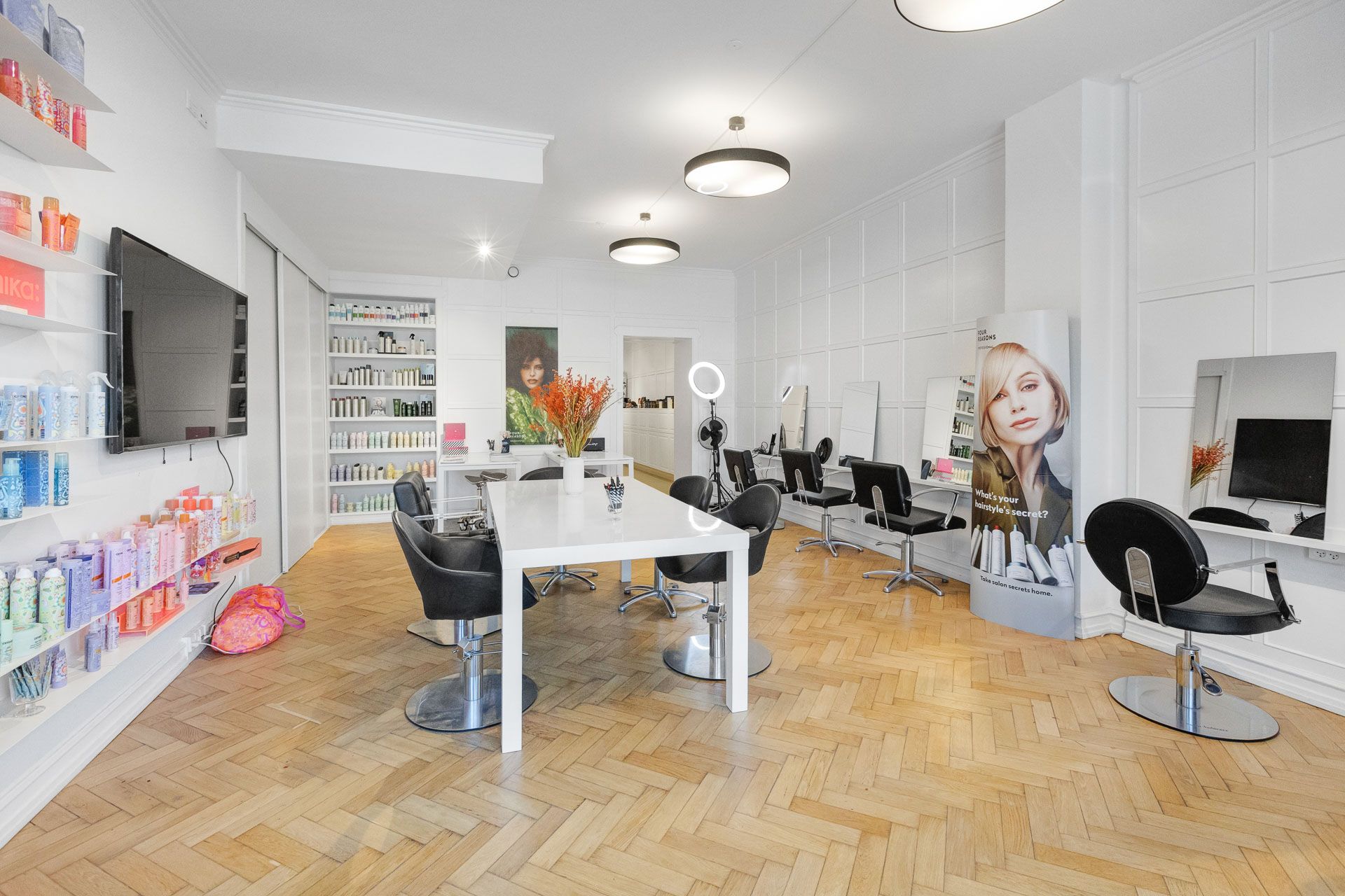 Lejemålet har en god synlighed fra gaden og anvendes p.t. til forhandling af frisør-produkter, hvorfor der løbende afholdes forskellige events og lanceringer. Til samme formål er der i det midterste lokale etableret 3 stationer til hårvask.