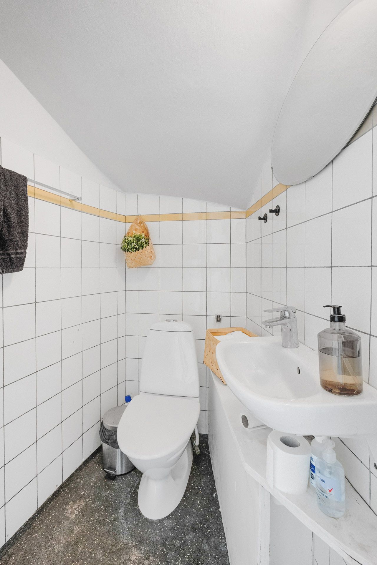 I stueplan til højre for hovedindgangen er indrettet 100 m2 showroom/butik, der kan overtages fra nuværende lejer. Her er adgang direkte fra gaden og via opgangen.