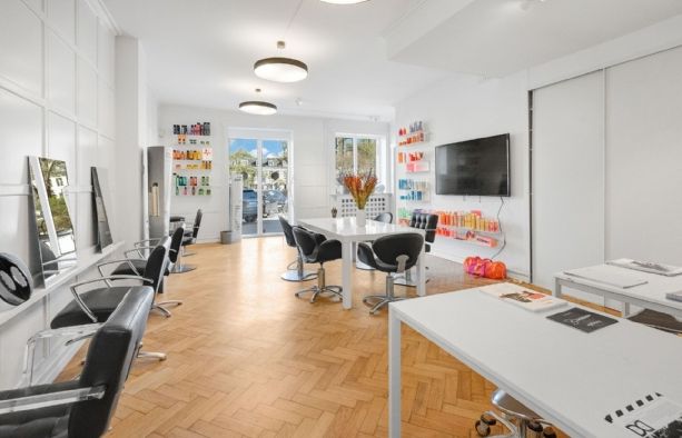 Lejemålet har en god synlighed fra gaden og anvendes p.t. til forhandling af frisør-produkter, hvorfor der løbende afholdes forskellige events og lanceringer. Til samme formål er der i det midterste lokale etableret 3 stationer til hårvask.